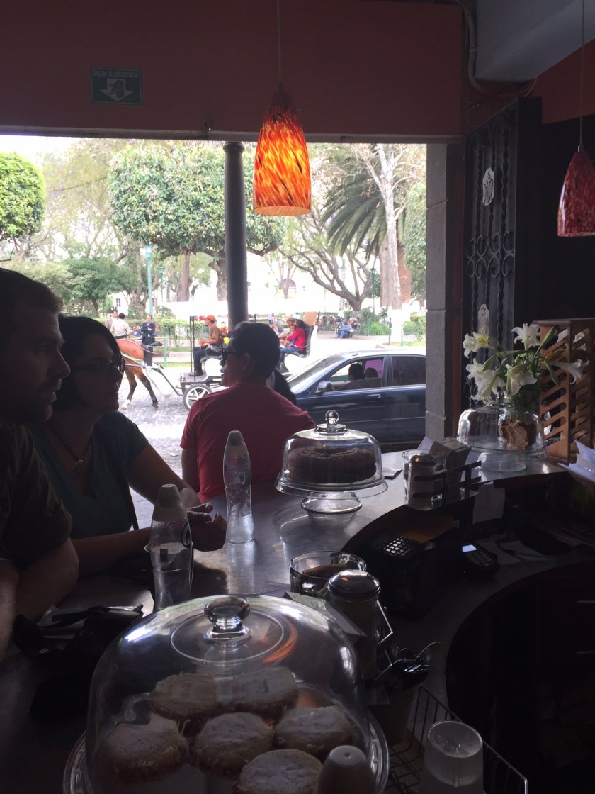 El Portal has become our meeting and waiting place. Here one can have cafe y cerveza and watch the pageantry on el Parque Central.