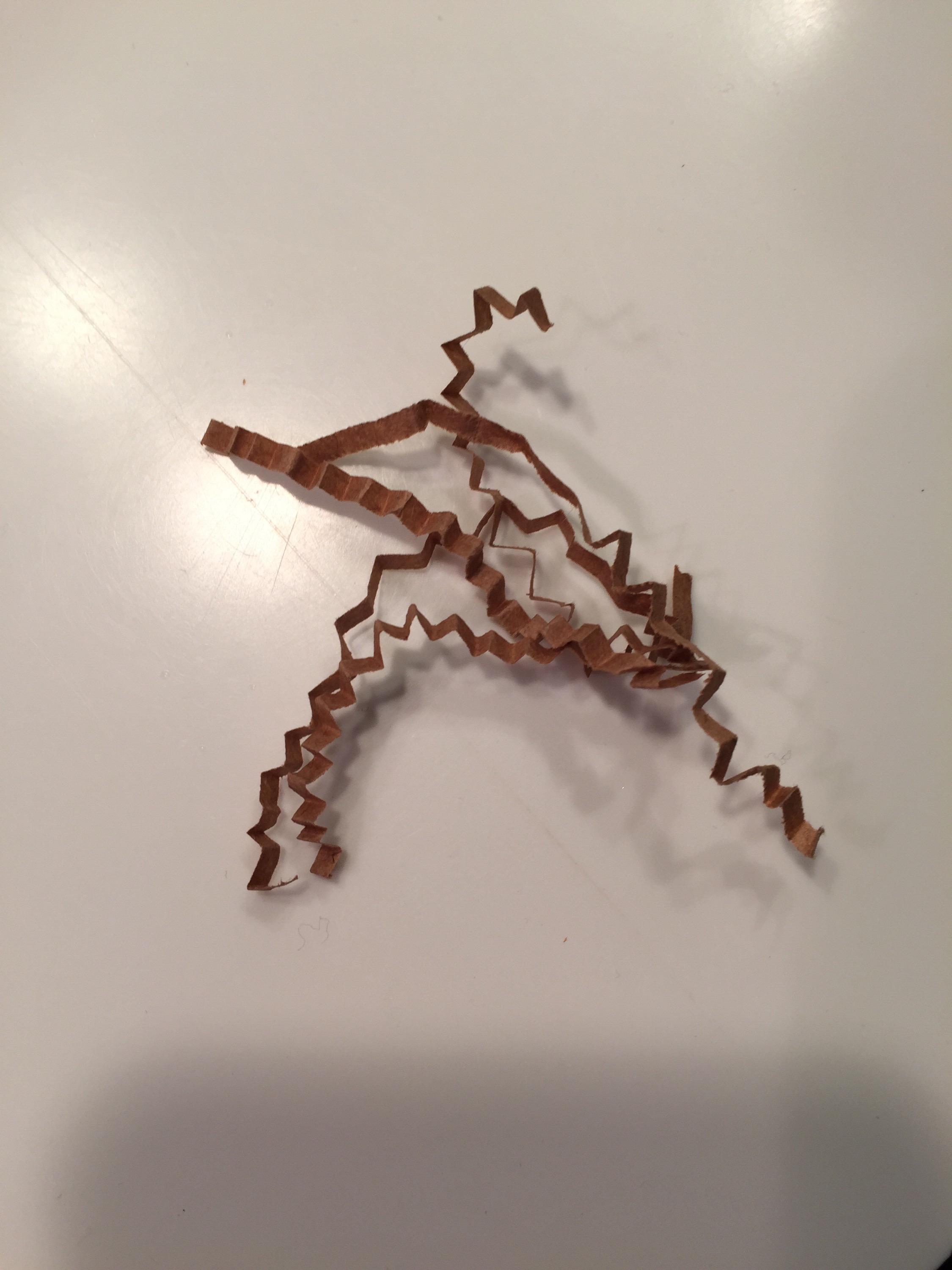 I admit I was puzzled. I couldn’t recall having played in a pile of excelsior that morning. My pre-movie meal hadn’t had any paper in it. Faced with a mystery I put the evidence in my purse and pondered on it throughout the entire grisly movie.
