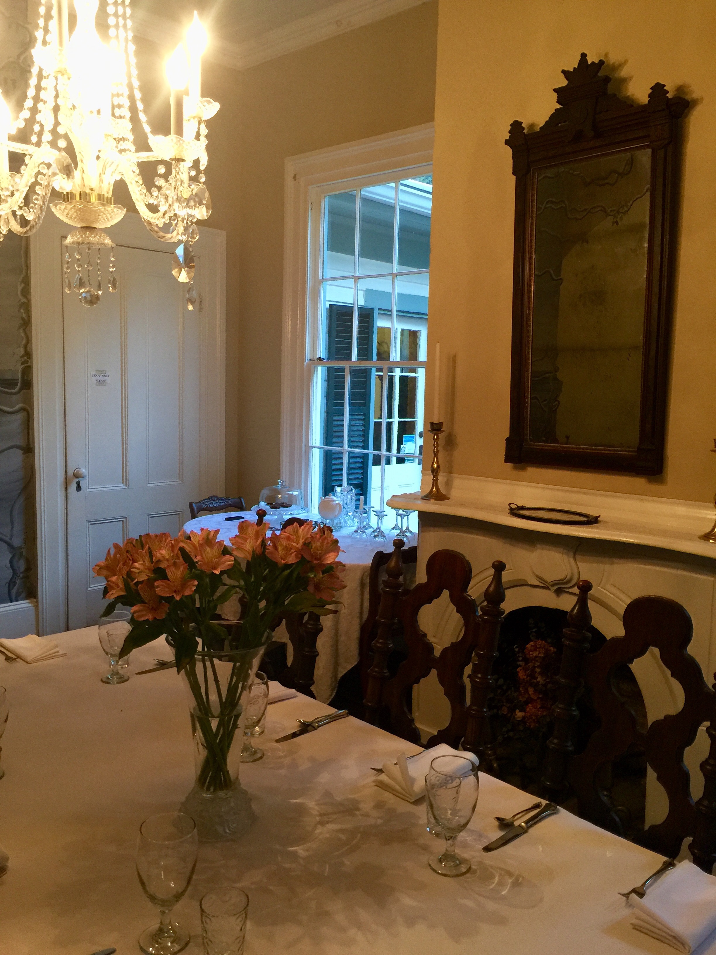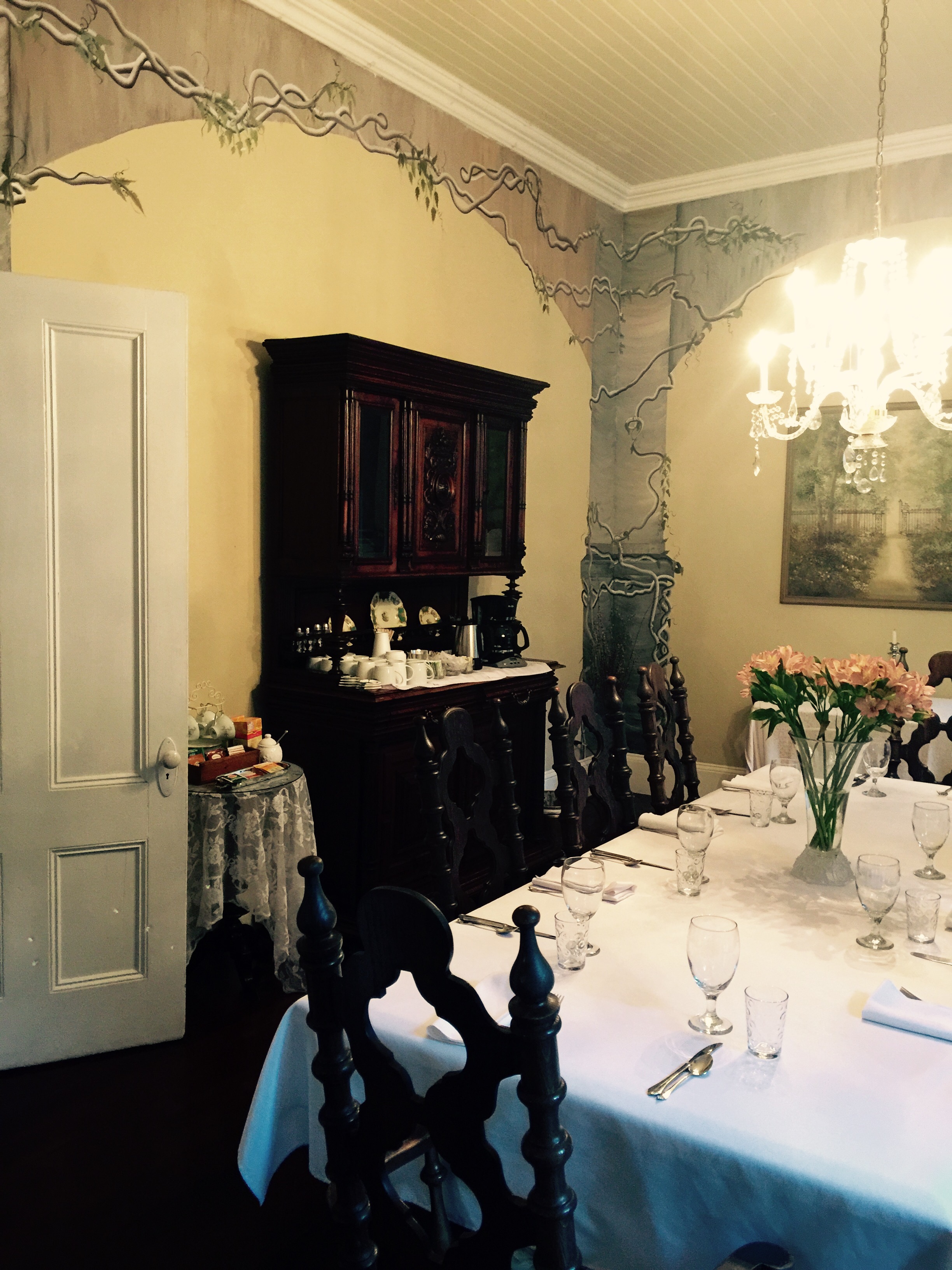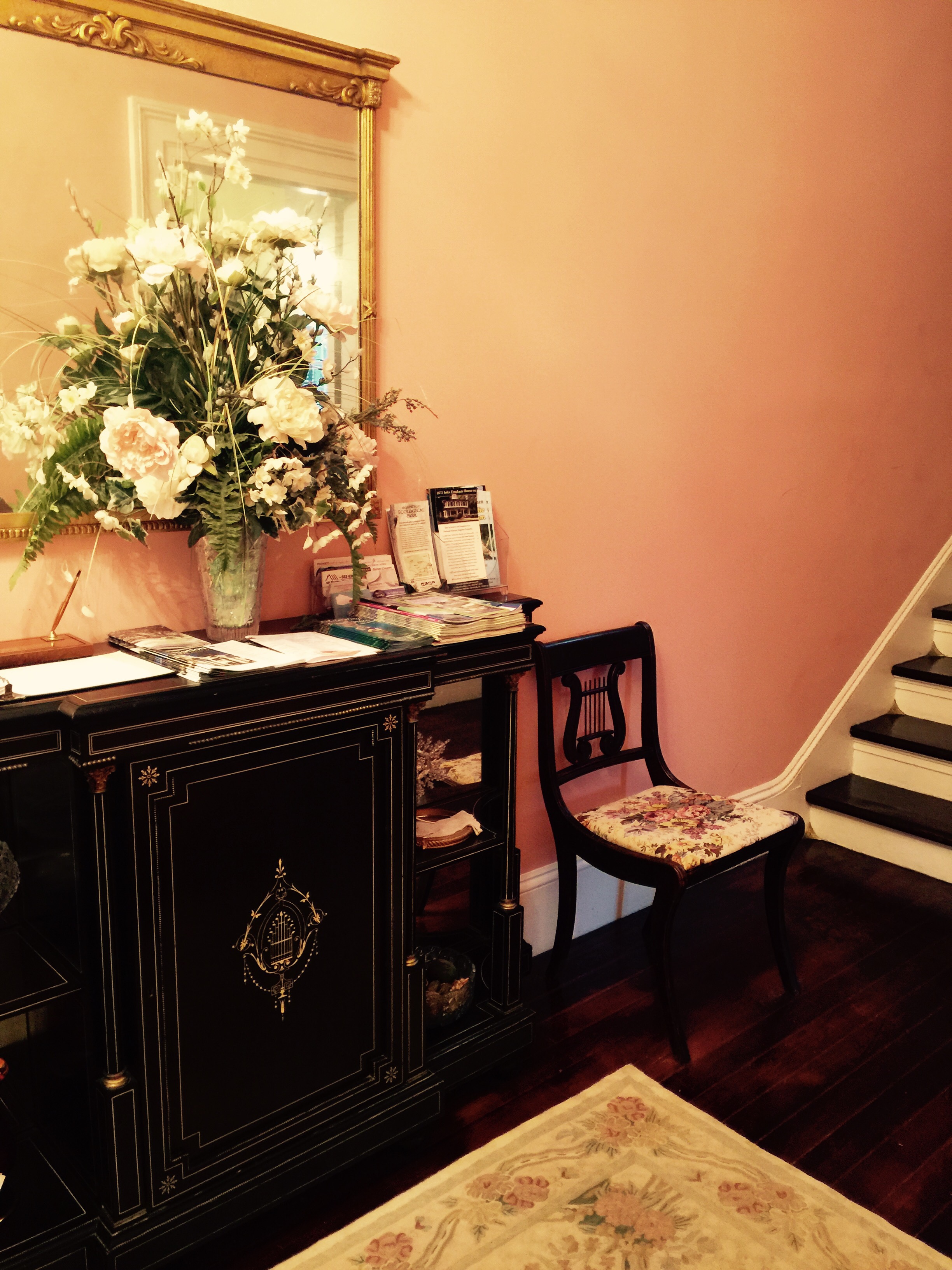 Even though the grounds of the inn had suffered at the hands of Hermine, this gorgeous home experienced a loss of power only briefly and was an air conditioned oasis on a hot, humid Florida day. The cool air felt so good when we stepped into the foyer that I almost cried.