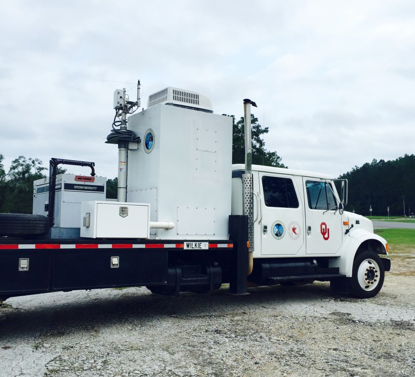 And bless your pea pickin’ heart, I bet you charmed hell out of Gordon and Addison as they allowed you to snapshot their OU whirling dervish of an inclement weather mobile tracking machine. Good get.