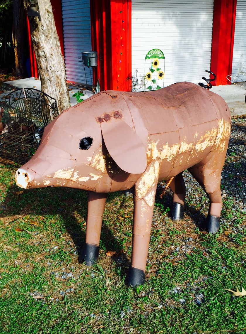 Seen outside a shop near Monticello, FL. I think this one should be called, “This Little Piggy Stayed Home.”