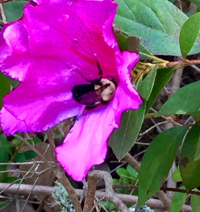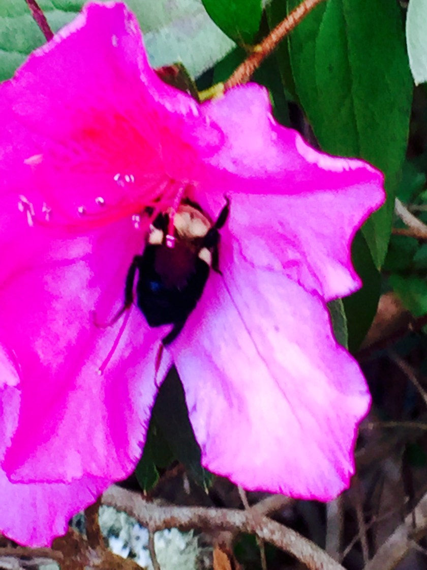 I’ve never claimed to be a professional photographer, roaming around with my trusty iPhone and snapping anything that catches my eye. Today’s snapshot, my 100th, is evidence of my lack of skills; however, I couldn’t resist asking this inscect if he’d “Bee My Only 1(00).”