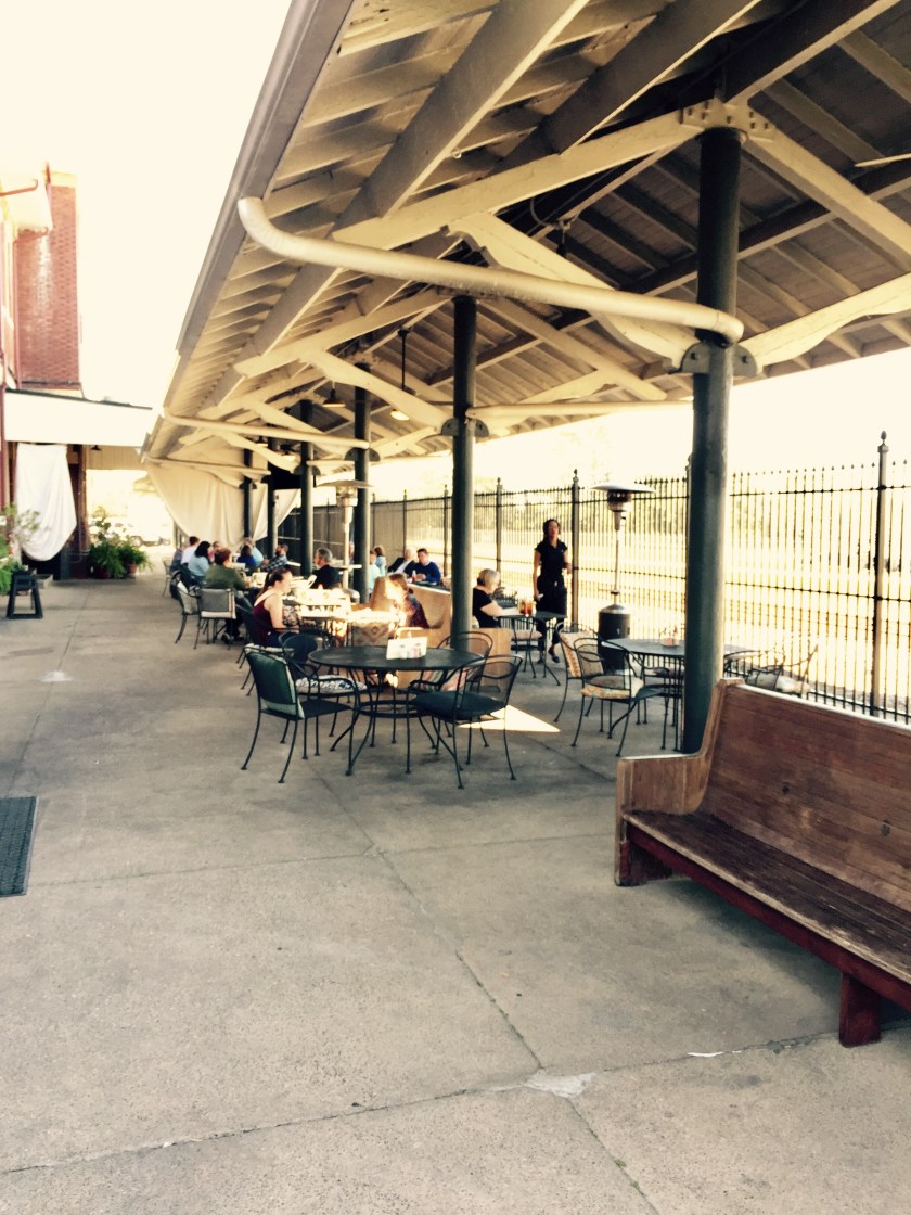 Sass is located inside a historic train depot and outdoor seating features a ring side seat to actual train tracks.