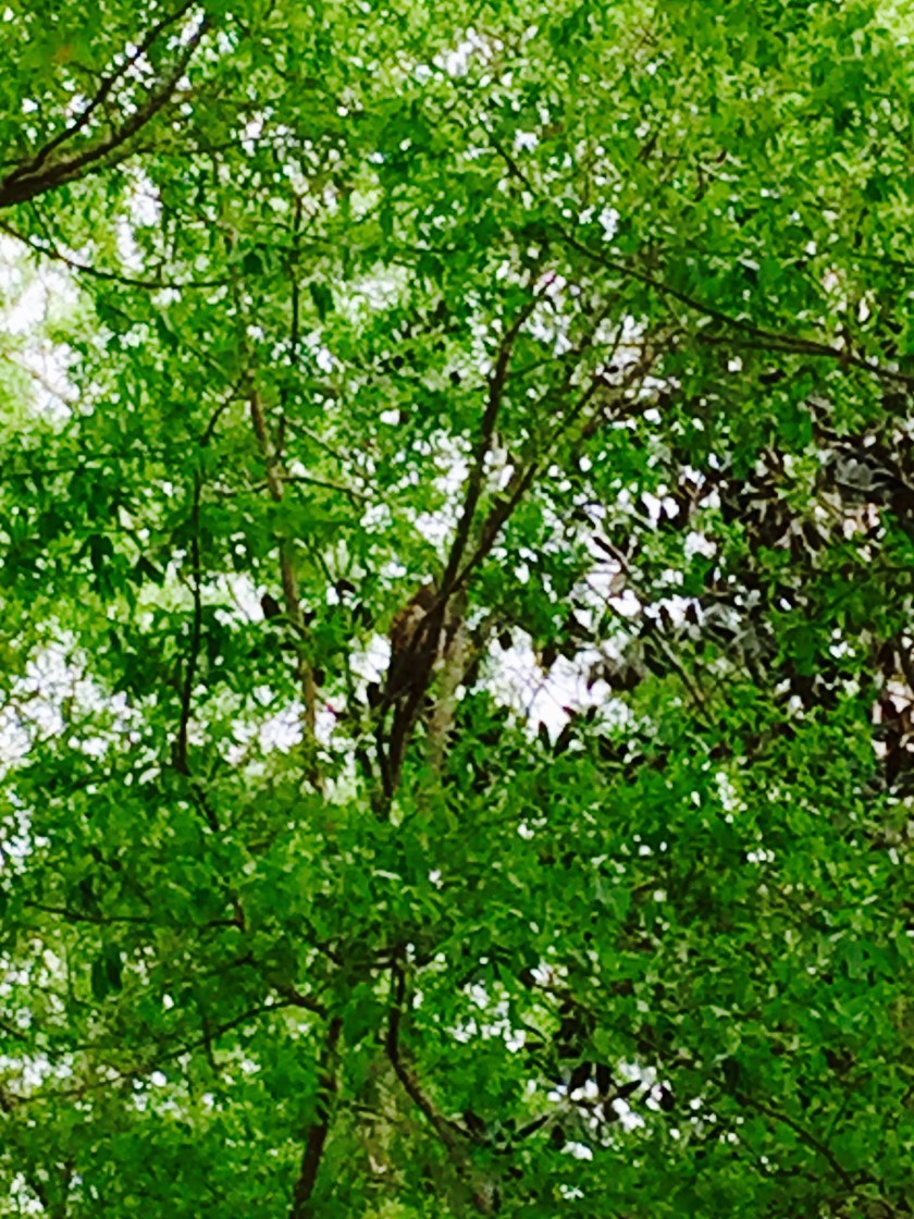 Today has been a perfect spring day here at Doright Manor. As I sat outside with a wee glass of wine and a good book I began hearing a pair of owls calling to each other from across the neighborhood. I snapped this photo and dare you to find the owl. I call this one, “I Promise There’s an Owl in This Photo!”