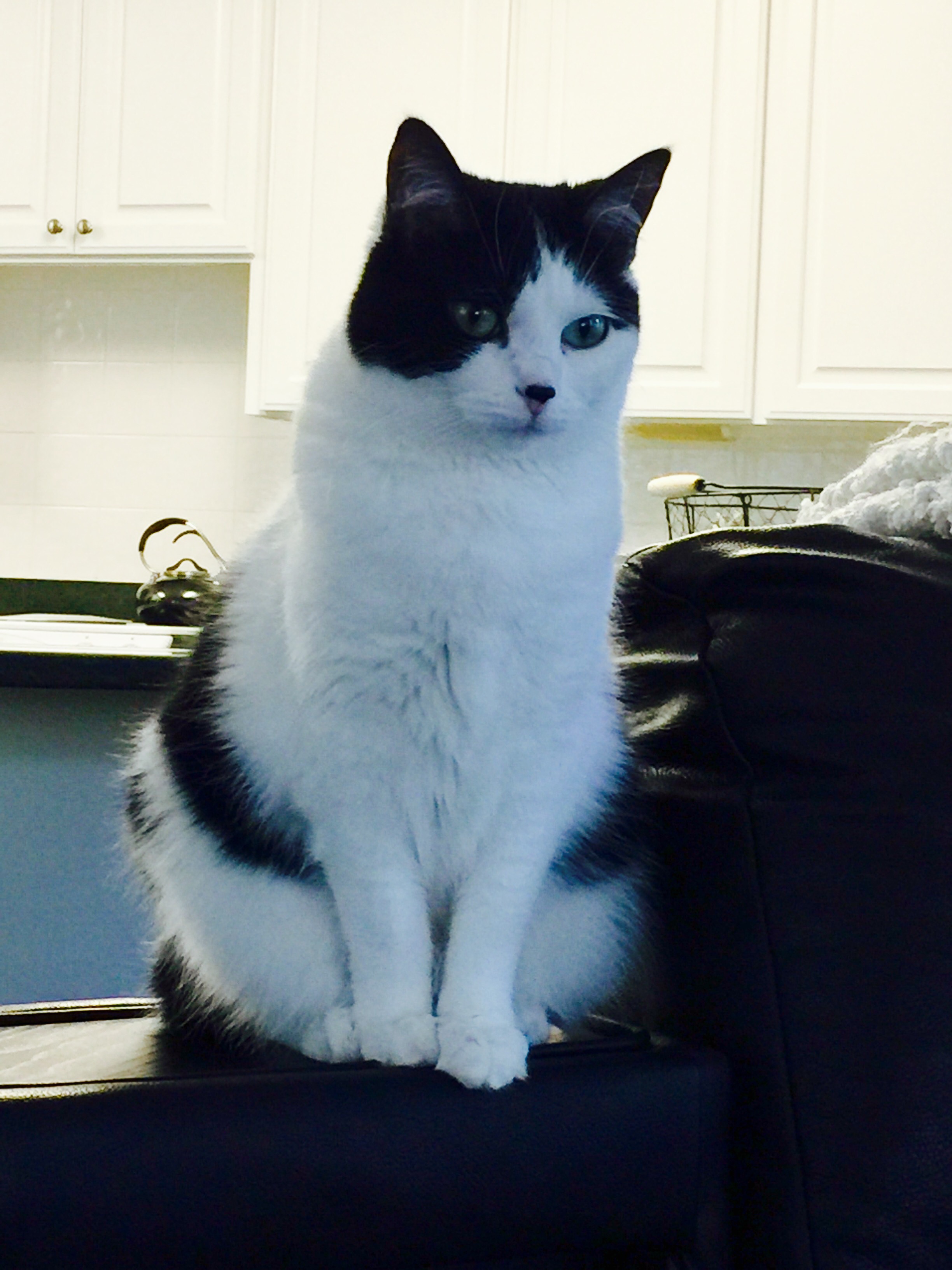 I’m trying to finish a project (alright, a nap), when Patches inserted herself into the scenario, insisting that I rise from my comfortable spot and get her a treat. I call this one, “Can You Hear Me Meow?”