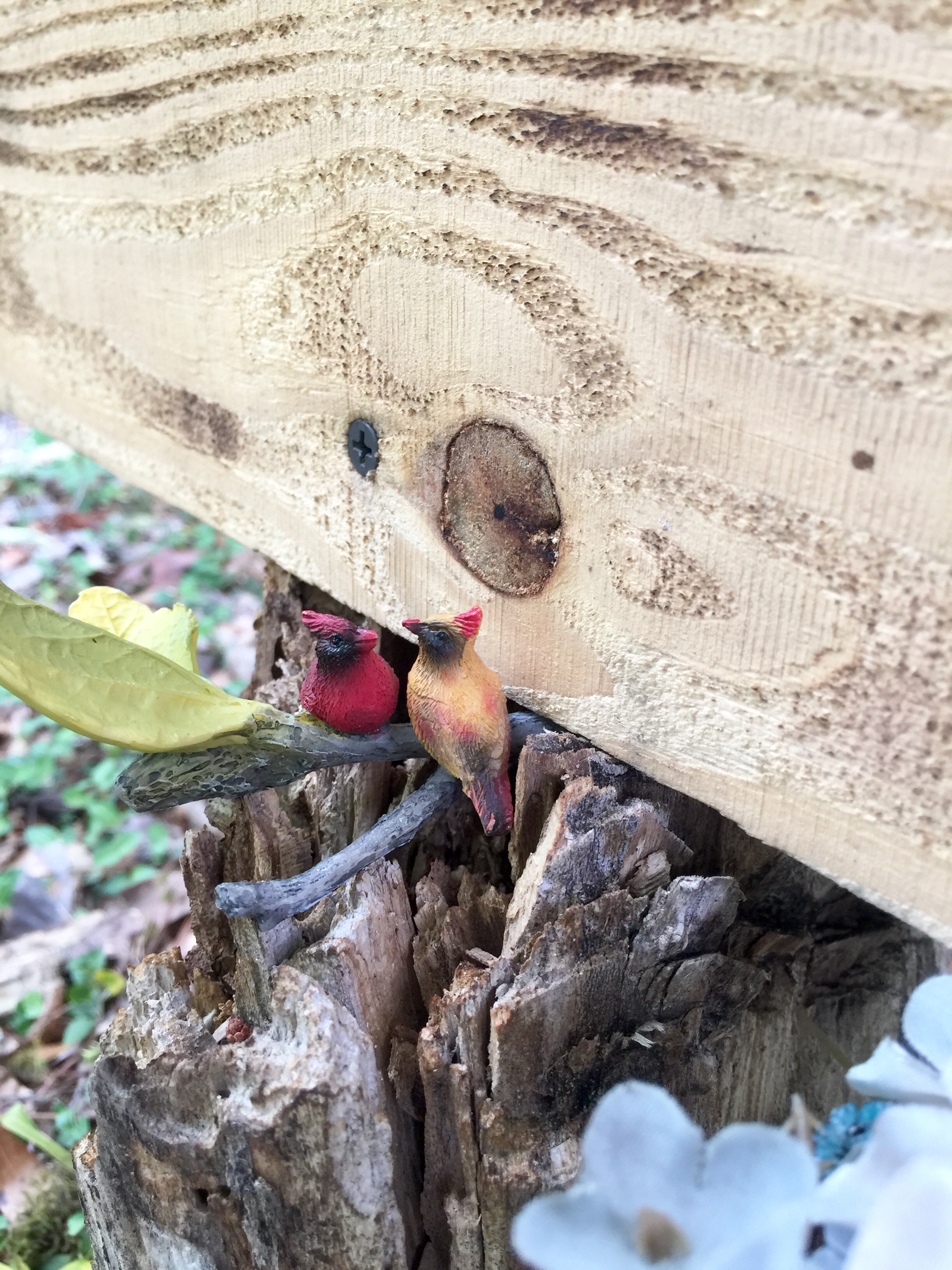 Look what other creatures were hanging around the new fairy house–a pair of teeny tiny fairy birds. I’m calling this one, “Petite Cardinals.”