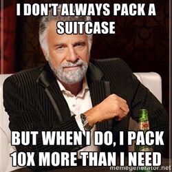 2. If I have time to pack, unhurried, I pack everything I need in a carry-on bag, whether I’m going for three days or three months. If I wait until the last minute, I stuff a huge suitcase and wear exactly 3 things because I can’t be bothered to unpack on vacation or even dig to the bottom.