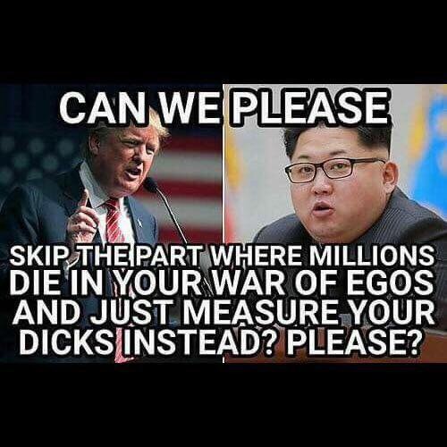 1. Agreed. I worked at a nuclear weapons assembly point for a time. The thought of a madman inflicting nuclear war on the world just to prove his power scares me to death. And we have two such men who are capable of this kind of atrocity.