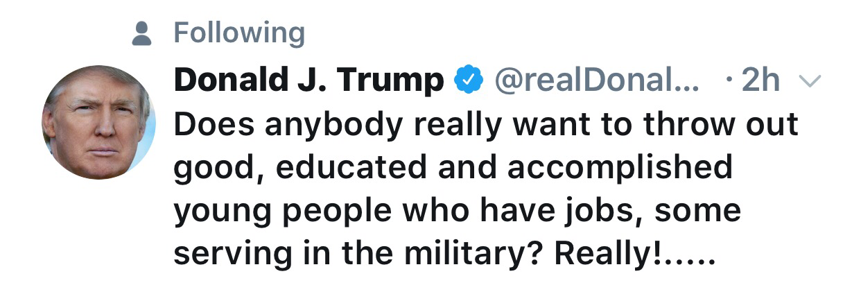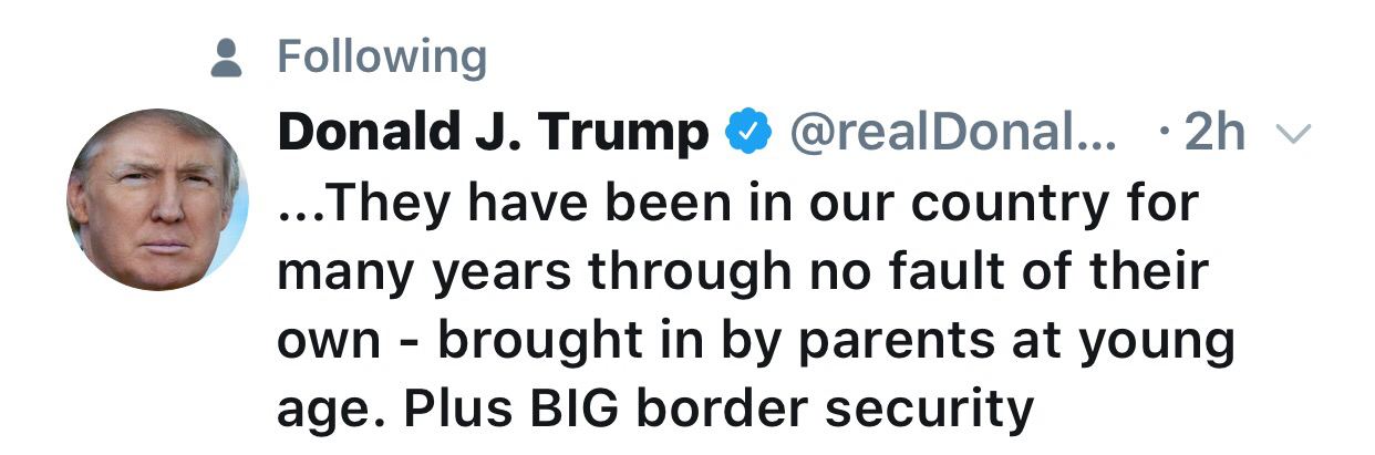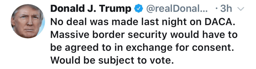 Donald Trump has agreed to work with Democrats to save “Dreamers” —Deferred Action for Childhood Arrivals, or DACA, allowing 690k to stay in the US and continue working, studying, serving in the military.