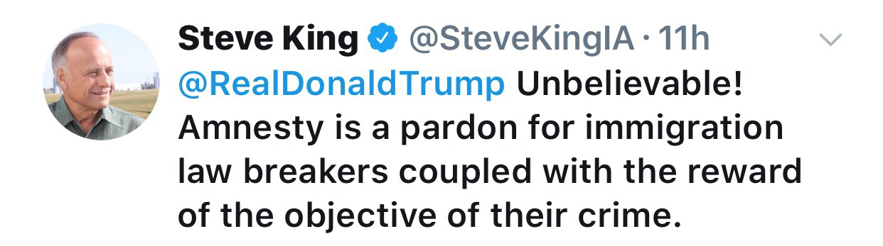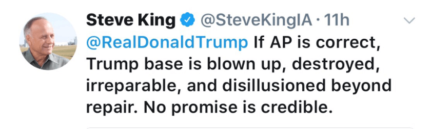 Steve King, heartless Republican GOP rep, (redundant I know), is disillusioned by a Trump inconsistency. He hasn’t been paying attention, or he’s agreed with all the inconsistencies so far: