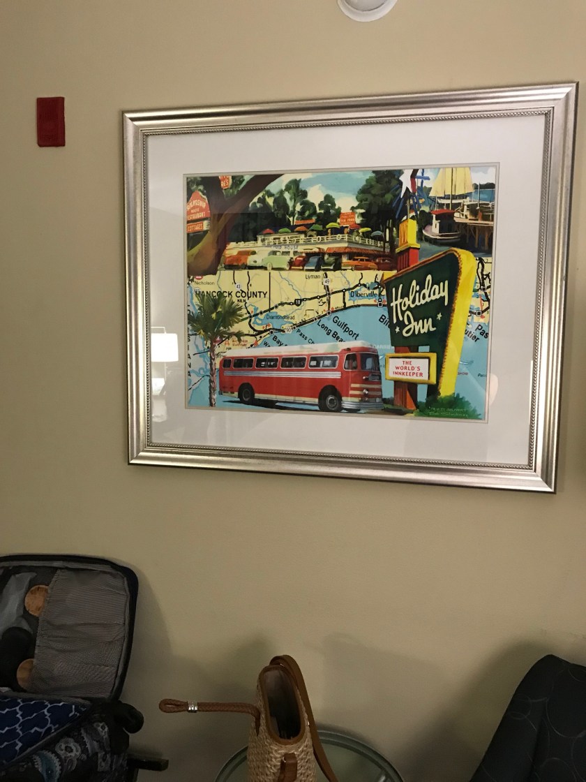 On my way to San Antonio, I spent the night in a Holiday Inn in Gulfport, Mississippi. I’d stayed there before and had fond memories of the place. The staff is friendly and the rooms comfy. This time I snapped a photo of the nifty artwork in my room. I love retro pieces and thought this was a nice change from the artwork one usually finds in hotels.