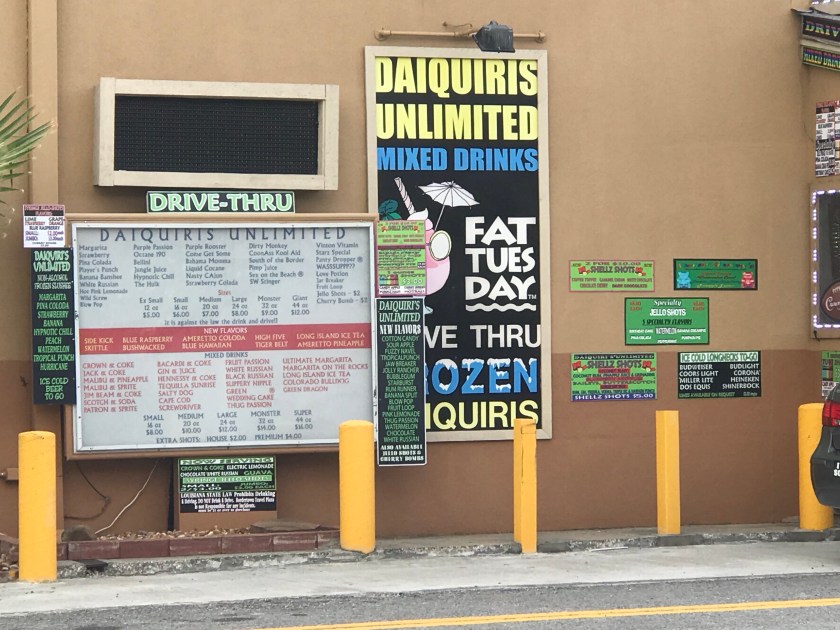 For instance this drive through daiquiri store in Louisiana, just across Texas border. Isn’t it illegal to drink and drive?