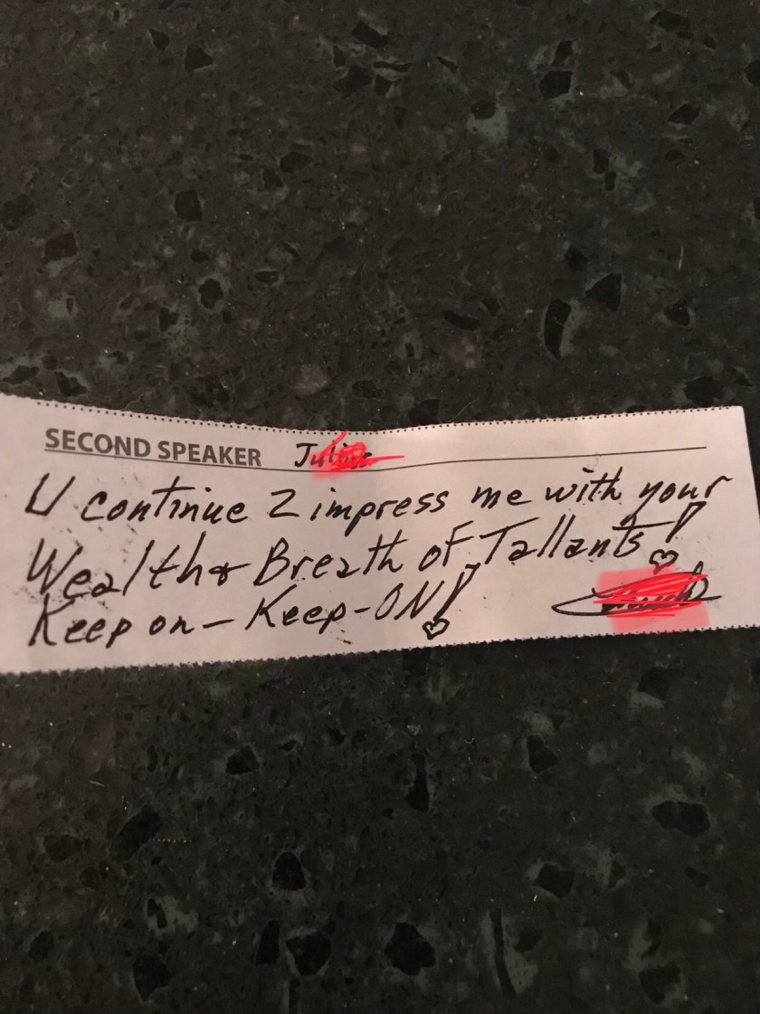 Intrigued I picked the paper up and looked around. No one was near me, so I opened the note. You’d have done the same, right?