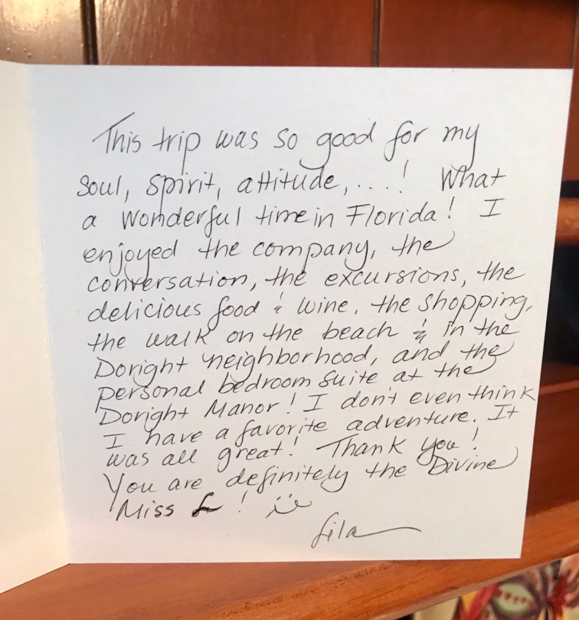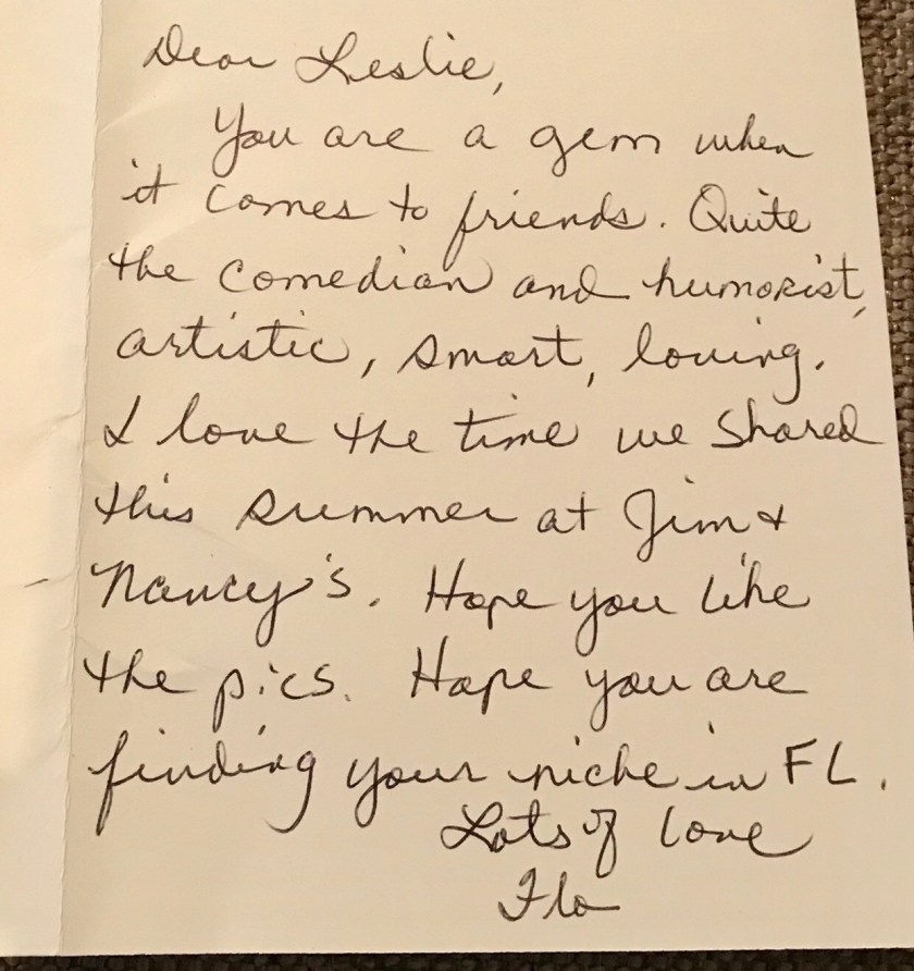 My friend Flo in Tennessee writes great notes. She finds humorous cards and sends along her thoughts in lovely cursive.