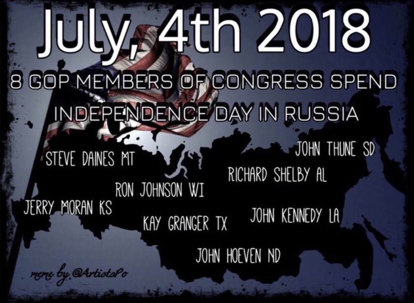 Countless GOP lawmakers, traitors, spent Independence Day in Moscow, with Foreign Minister Sergey Lavrov, and other Russians who interfered with our 2016 elections.