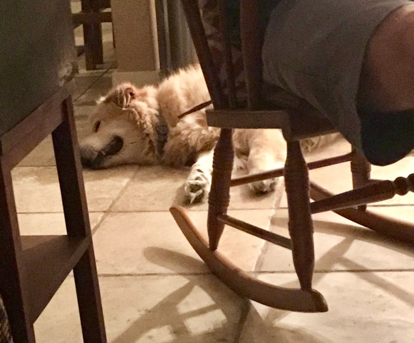 Toby, my adorable coffee table sized grand dog, is an elderly Golden Retriever/Something Else mix. He is sweet and handsome, stubborn and manipulative. Taking him for a walk is an adventure played out in slow motion.