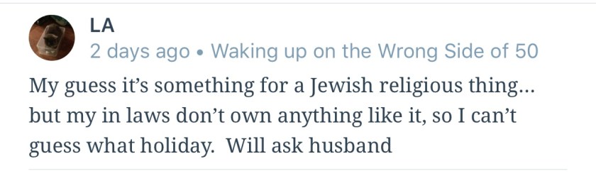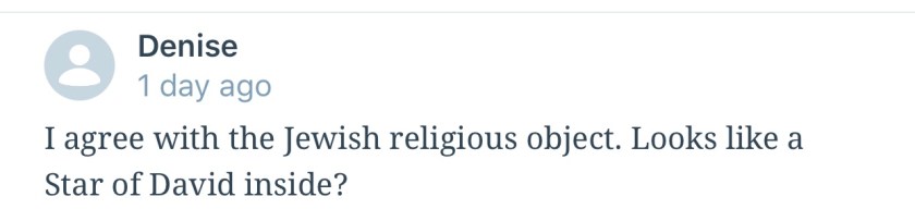 Again, similar to, but much smaller than my piece. If it weren’t for the Star of David I’d be all in on my butter server theory, but the religious symbol gives me reason to doubt.