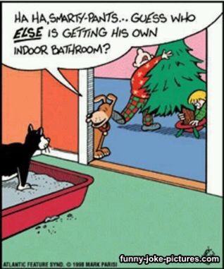 At any rate, Studly and I learned our lessons, and we have a small tree. The cats are back to giving us lots of love, so everyone’s happy. They asked me to find a bunch of cat Christmas comics, too, and rather than make them get their signs out again, I complied.