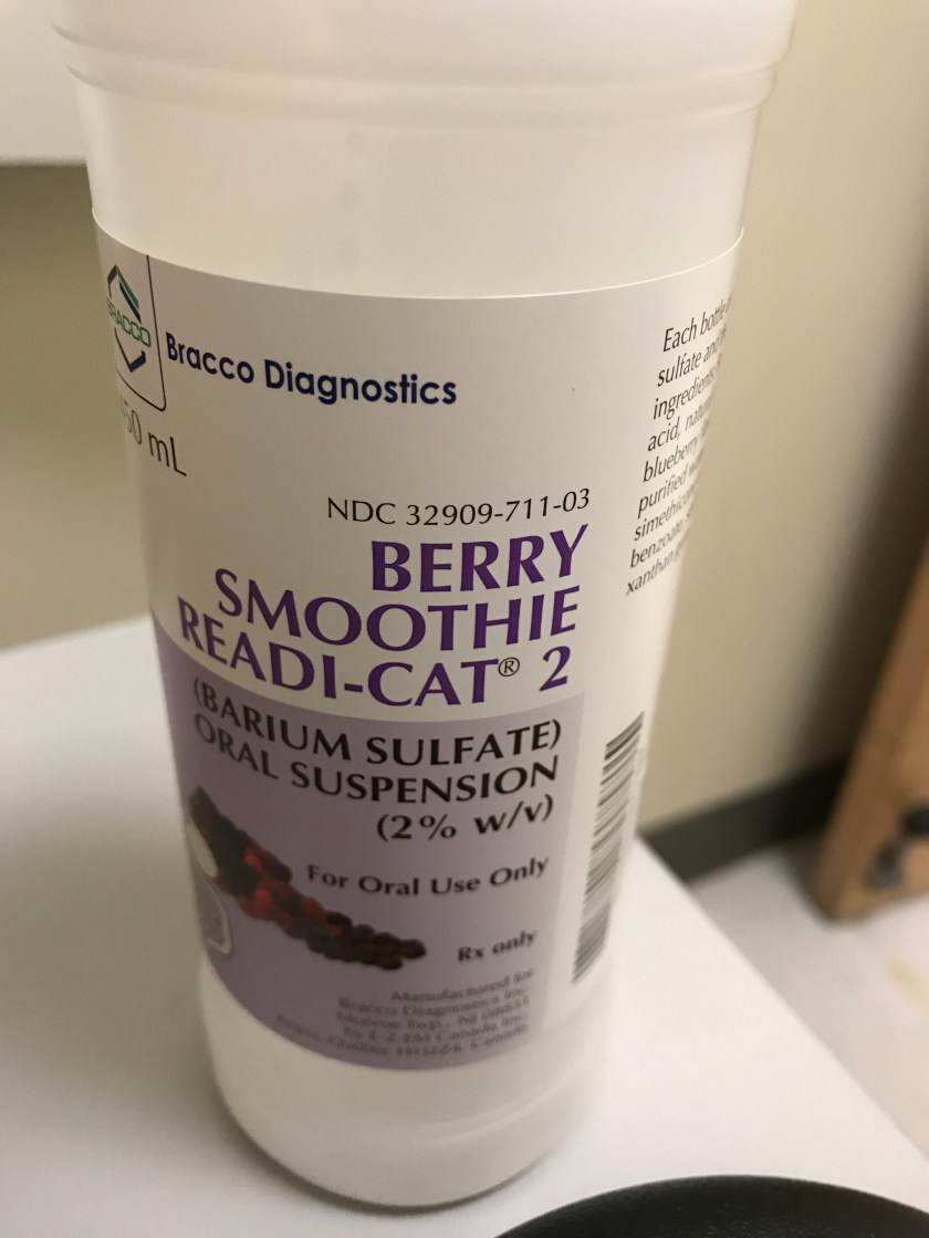 I called the eye doctor’s office just before I was handed my first barium smoothie, and had an appointment scheduled after just a few sips. Yum, yum.