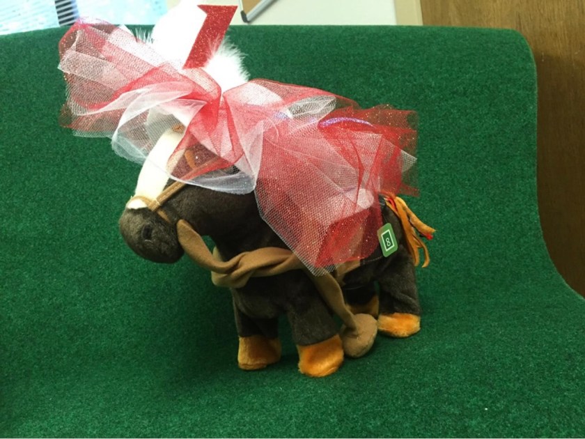 It was such a delight meeting you at the Hereford Senior event. We had a grand time. The horse I made brought in $550. Not bad for an out of state entry. I did win one item from the last auction- the Kentucky Derby socks for hubby Tim. Has a mint julep as the motif. What a great memento!
