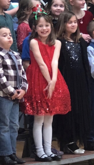 4. Our daughter sent photos and video of our youngest granddaughter performing in her school’s holiday concert. Isn’t she adorable? (The answer is “yes,” by the way.) Note the cute little guy next to her with his puffed out cheeks.
