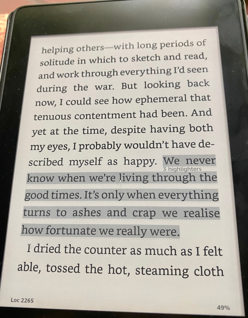 I’m reading Light of Impossible Stars, the third novel in Gareth Powell’s Embers of War series. When I came across these sentences it hit me just how perfect they were for what we’re experiencing now. And, who knows? A month down the road these days in early April 2020 might be considered good times. Everything is relative. Look for the good when and where you can. We will survive.