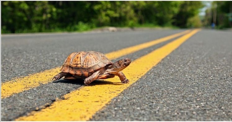 As it turned out, the reason for the flashing lights was a sweet little turtle crossing the road. If I hadn’t reduced my speed, I’d likely have run over him. That would’ve been a tragedy. I always brake for turtles.