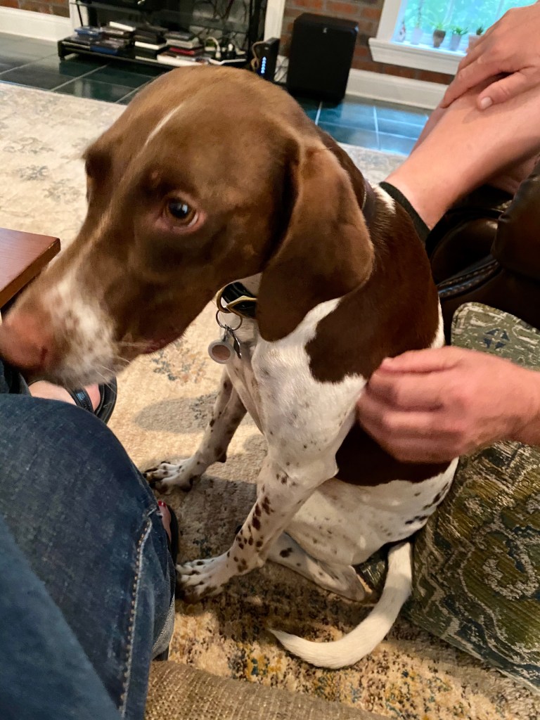 They had their adorable dog, Gus, with them, so we kept our cat sequestered in the master suite last night. The two were aware of each other, but no one got chased and neither of them puked from nervousness, and we had a great visit with family.
