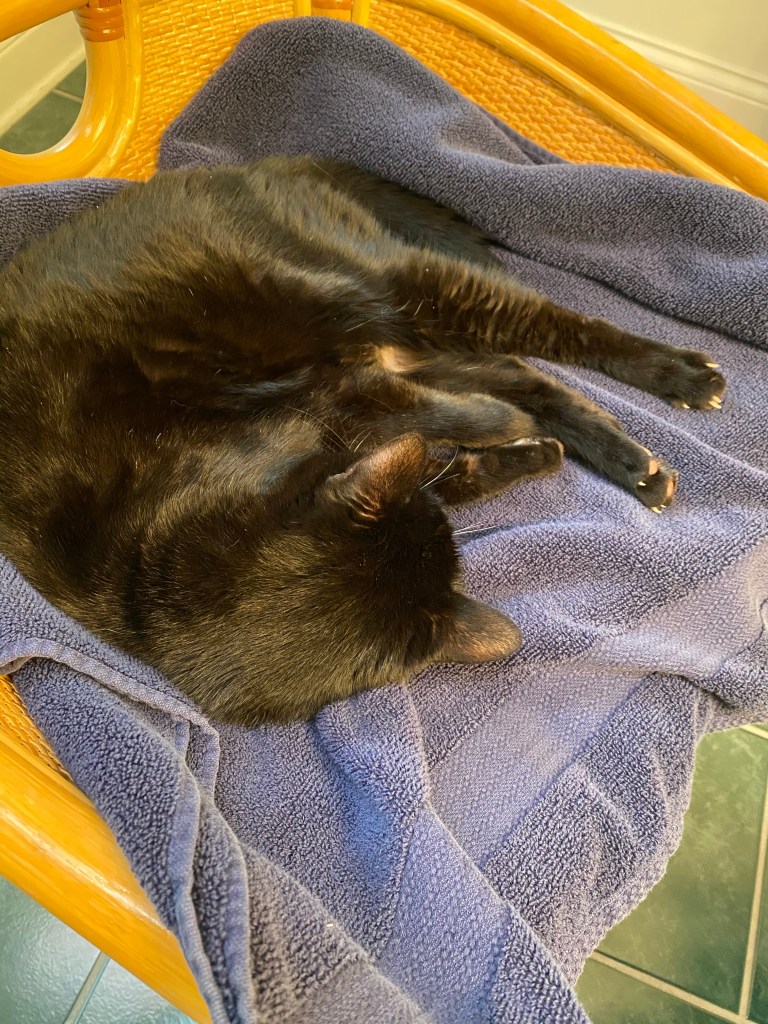 In case you wondered, the towel was heated in the dryer for Scout’s comfort. She often sits in front of the dryer, requesting a warm towel, and I always acquiesce. I’m a well-trained human.