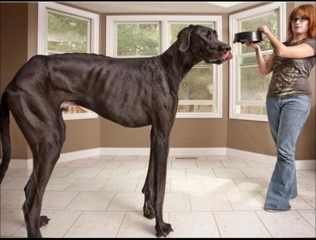 There were some interesting segments in the video. For example, a Great Dane named Zeus who, when standing on his hind legs, measured 7 feet, 4 inches tall.