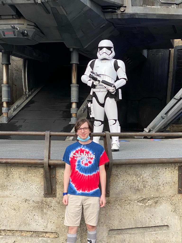 On our first day we explored Disney’s Hollywood Studios with the express purpose of doing all the Star Wars stuff, and we were successful. Garrett and I share a love of that far, far away galaxy, and I’d worried that we wouldn’t be able to ride the number one ride, The Rise of the Resistance, but we did. It was as awesome as we’d hoped. No spoilers because you just have to experience it to believe it.