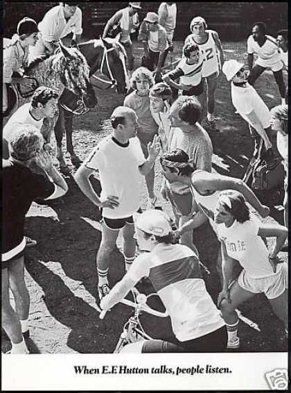 Remember the old E.F. Hutton commercials? They usually featured a collection of well-heeled folks standing around at a cocktail party or gathered ‘round a campfire chatting away until someone in the scene said, “Well my broker is E.F. Hutton and he says…” Once those words were uttered, all conversation ceased and everyone leaned in to listen. I kind of have the same effect on people. I might just be the new E.F. Hutton.