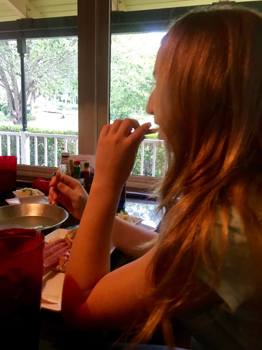 Our youngest granddaughter, Harper, invited me into her world of make believe in this backyard paradise, telling me that a bad villain had taken over the world and turned all the real gnomes and animals into statues. Only by defeating this villain could we bring the statues back to life.