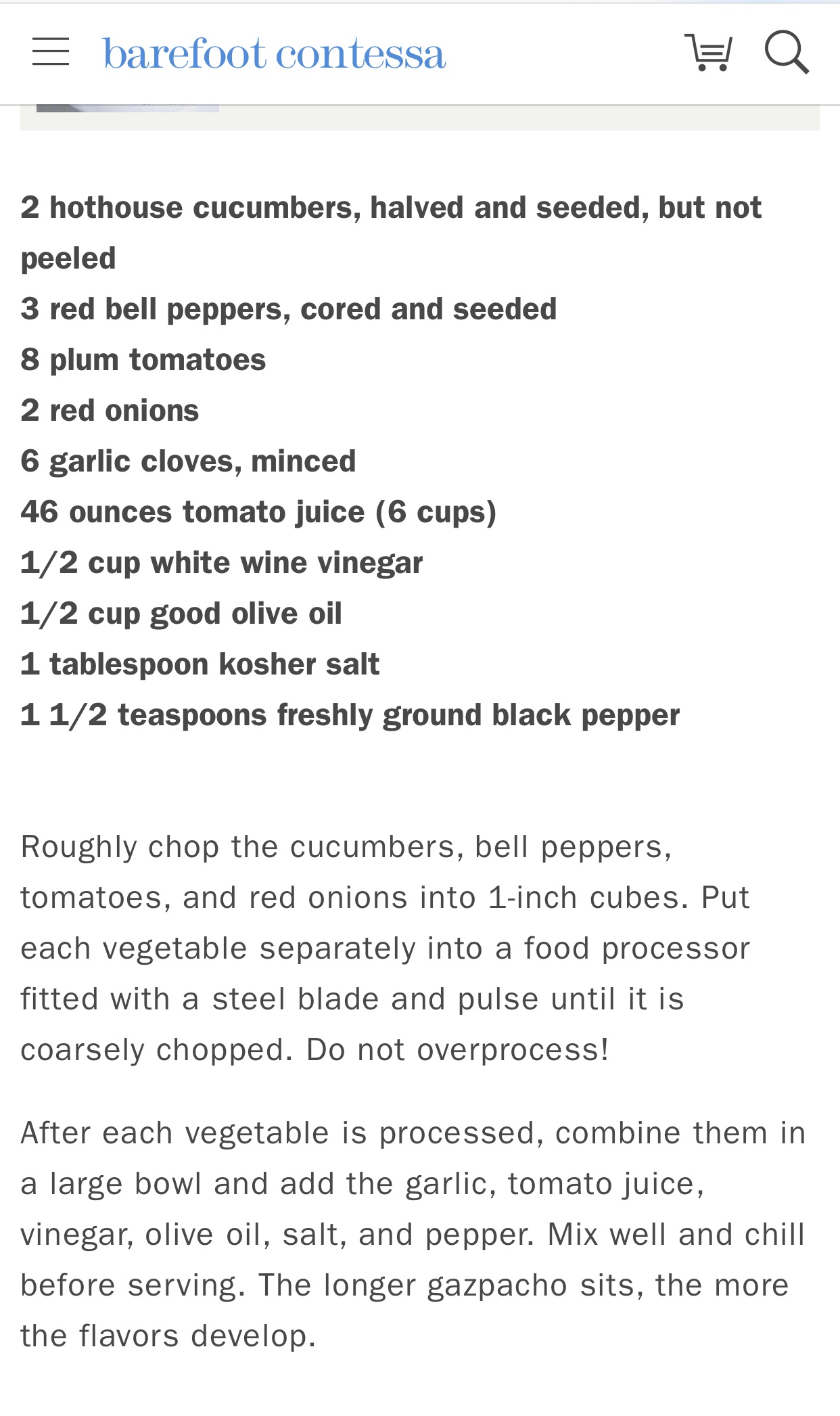 Here’s a recipe for gazpacho, although, it can be made with different ingredients, and below that, one for the juice I made.