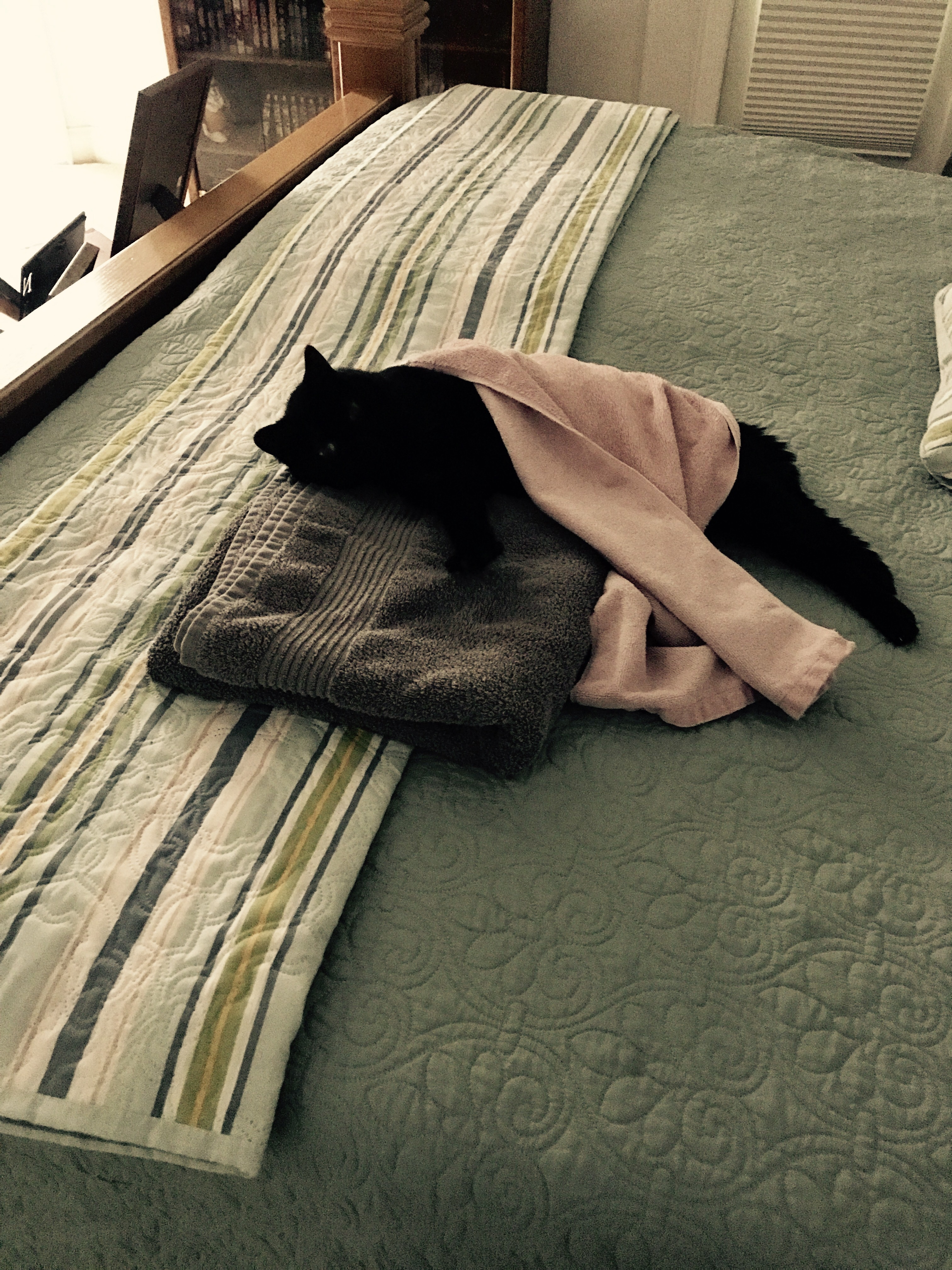 I would love to say I slept like a baby on Saturday night, and I did–a very colicky baby. Again I got up around 5 a.m. and this time emerged into a gray world and a steady rain. I did make better time and was home by two that afternoon. I kissed Studly and handed his new truck keys over. He tucked me into bed and then I didn’t hear another peep until he joined me around nine.