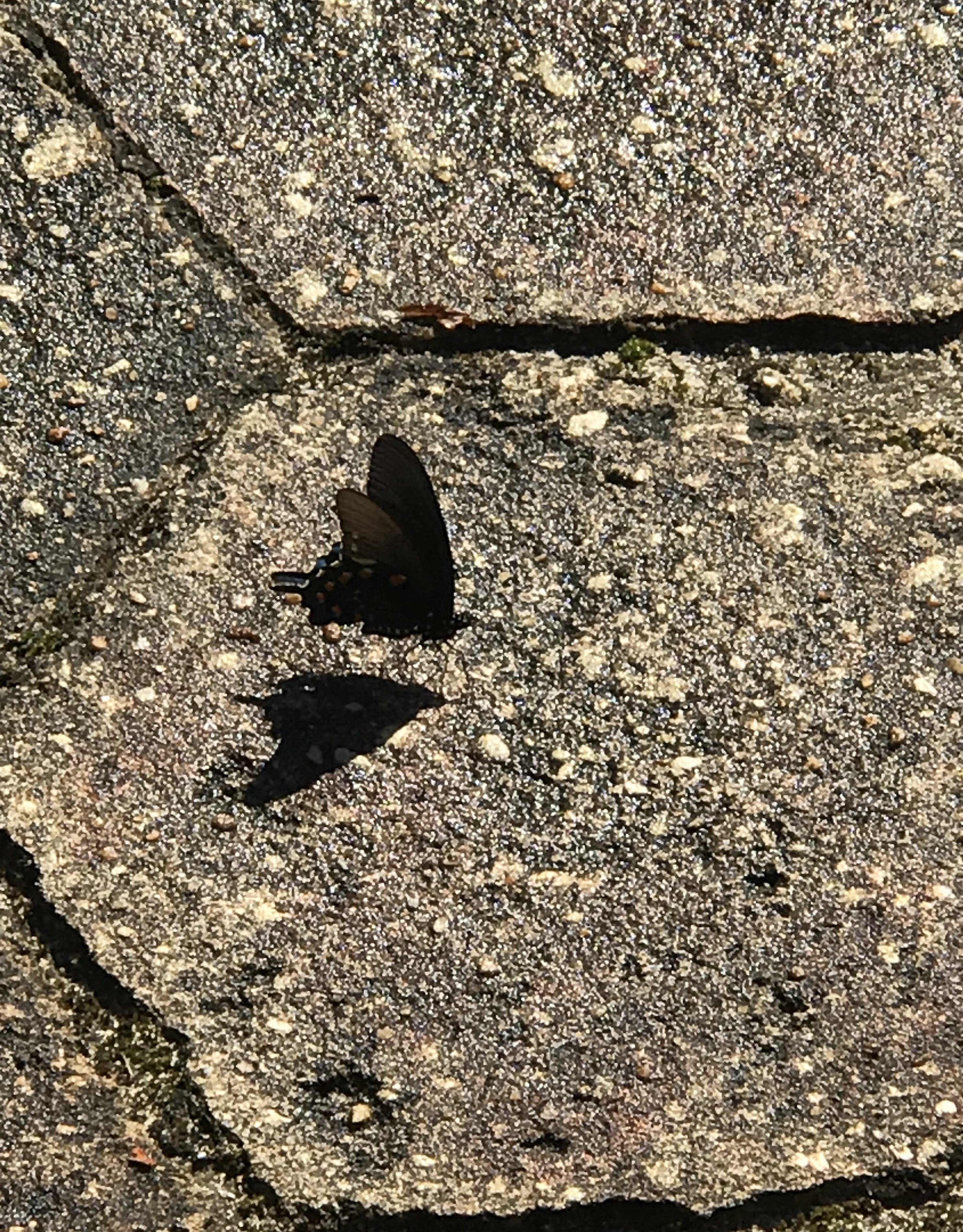 Doesn’t it appear that the butterfly is hovering above the walkway outside the lodge?