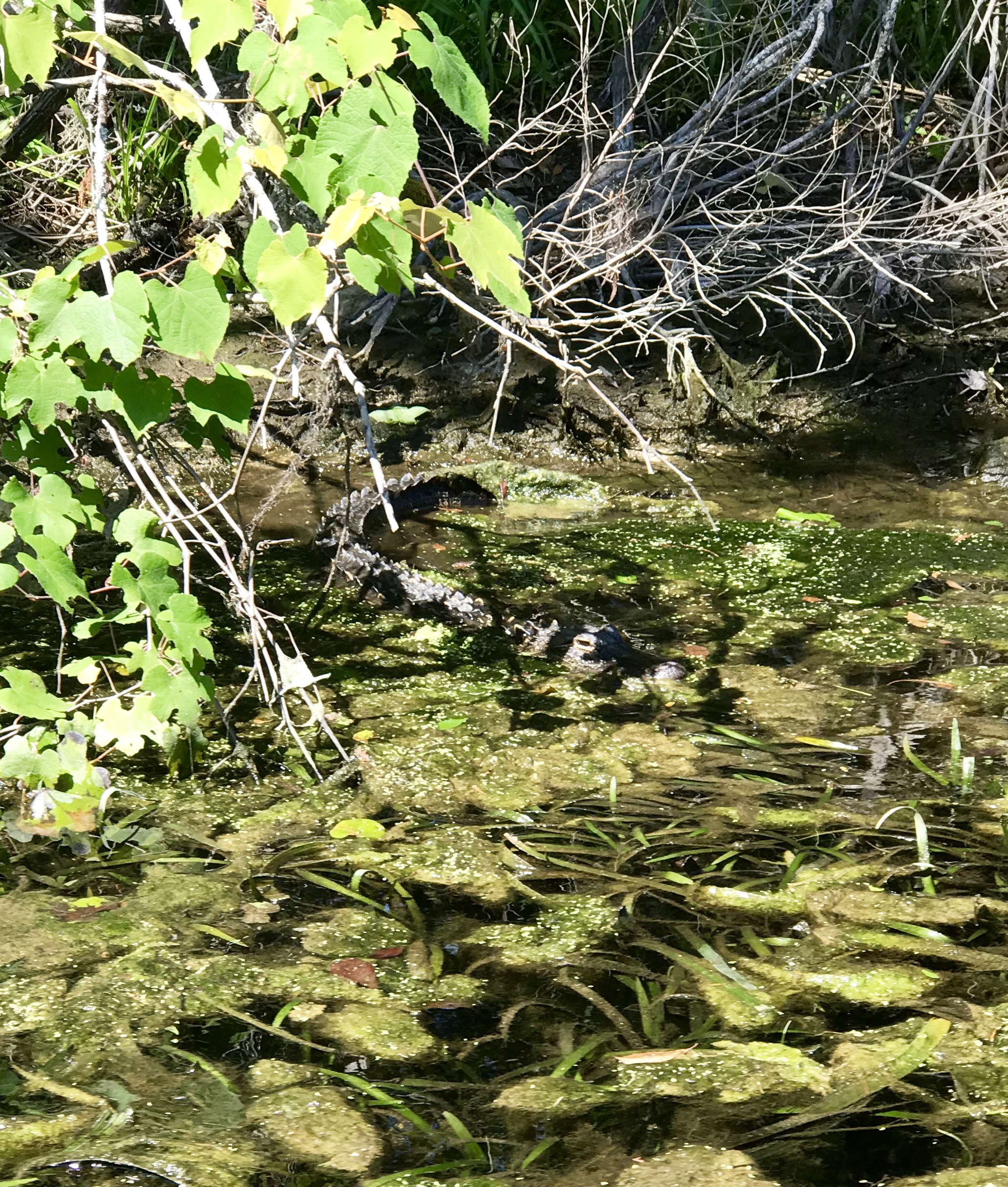 Can you spot the alligator nestled in his hiding spot? He was the first of several we saw that morning.