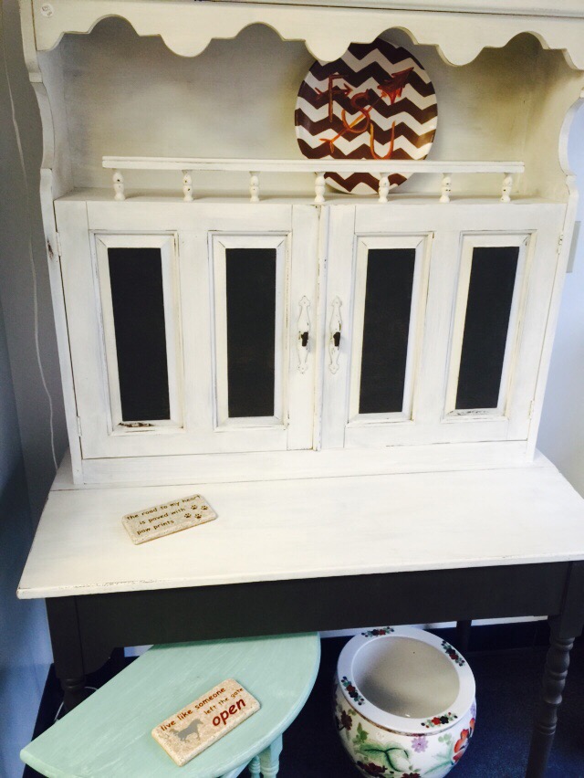 After taking two full hour to create my little sign, I’m in awe of these larger projects. She has given me some ideas I might need to pursue. I wonder how Studly Doright would feel about having his motorcycle lift chalk painted? You know what they say–it’s easier to ask for forgiveness than for permission.