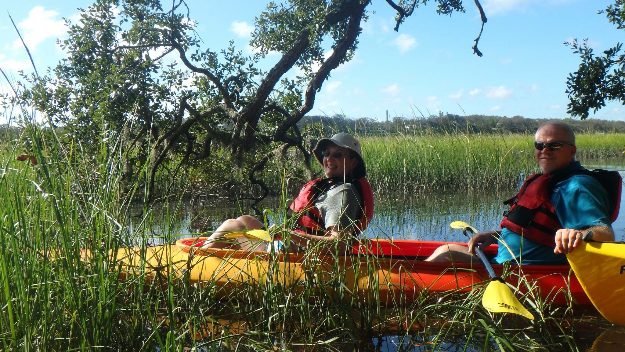 Another photo taken on Amelia Island showcases the swamp we kayaked through on a recent visit. That house in the background looks a bit haunted shown in black and white.