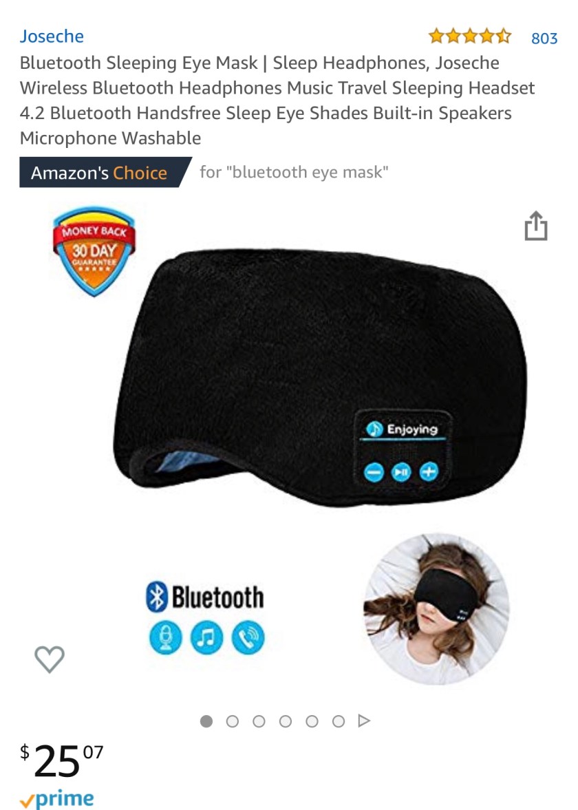 Now, this sleep mask was the very first thing that popped up on my Amazon feed on Tuesday. How did they know it’s what I wanted/needed? I have my suspicions: