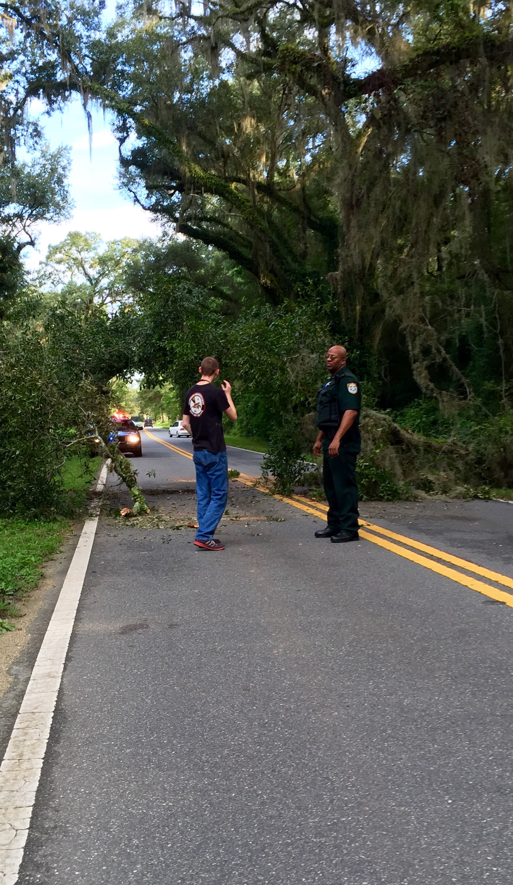 I’d planned on snapping a photo of the canopy formed by the live oaks on either side of Lanier, but as we approached the canopied section we noticed flashing lights.
