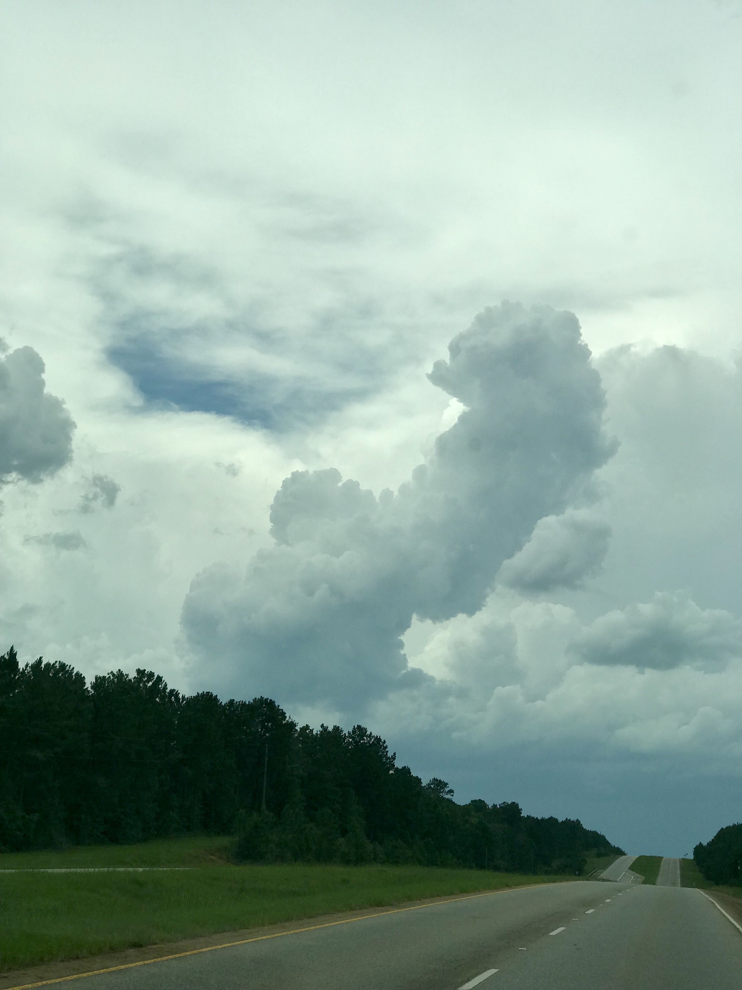 Last Saturday afternoon Studly Doright decided we needed to drive the convertible into Tallahassee for dinner at a local sports bar. The weather was perfect with temps in the mid-80’s and a smattering of towering cumulonimbus clouds off to the west.
