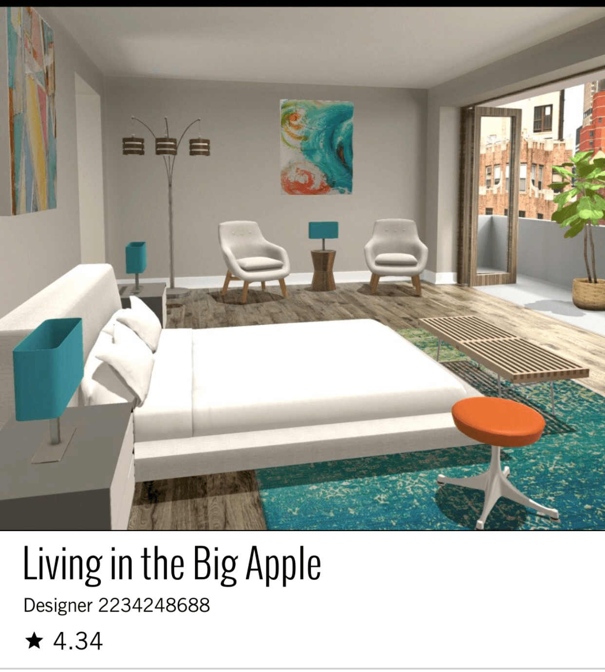 Several weeks ago I shared with my readers my obsessive interest in the mobile app game Design Home. I’m totally hooked on this game in which participants design rooms for fictional homeowners.