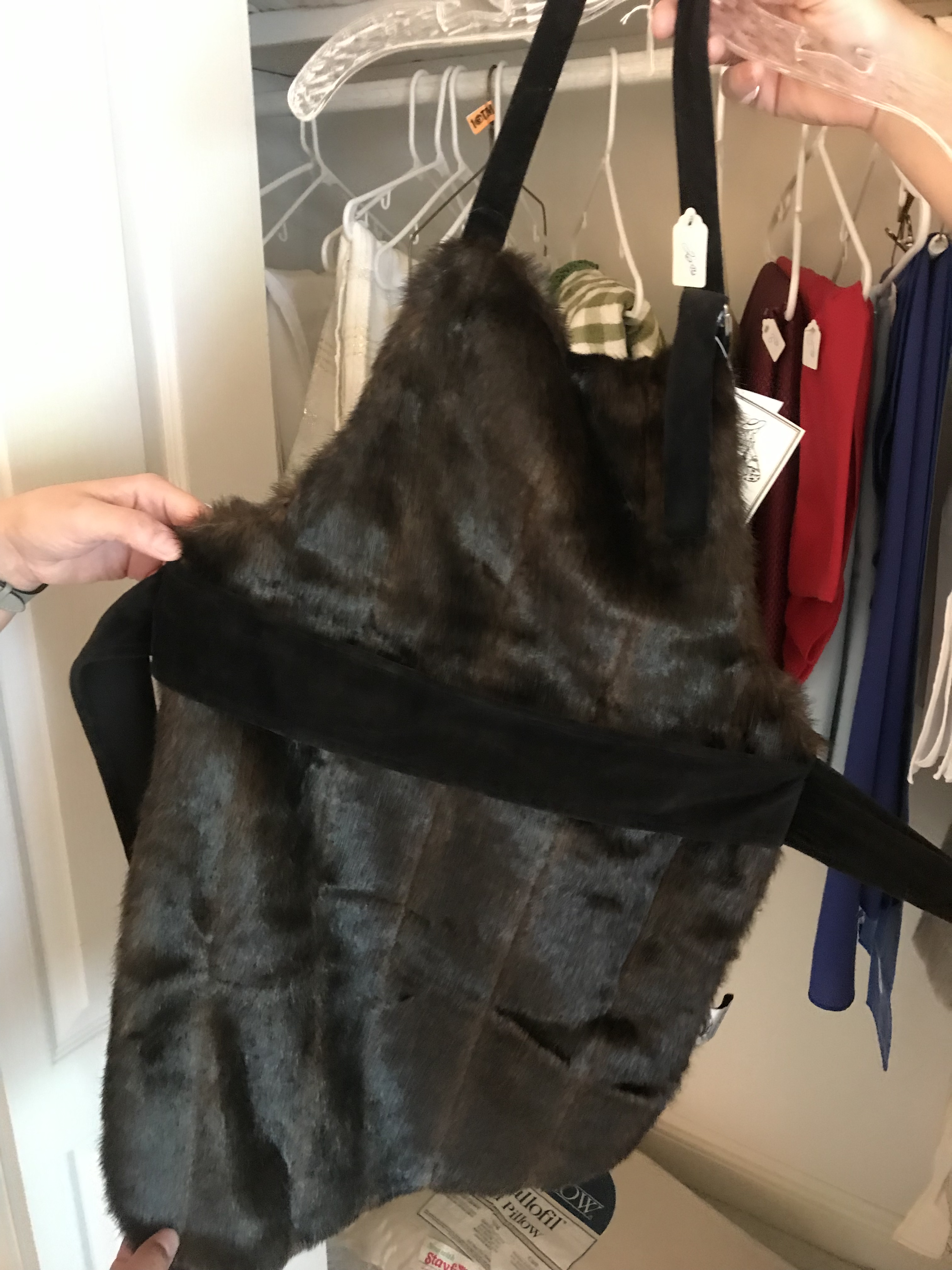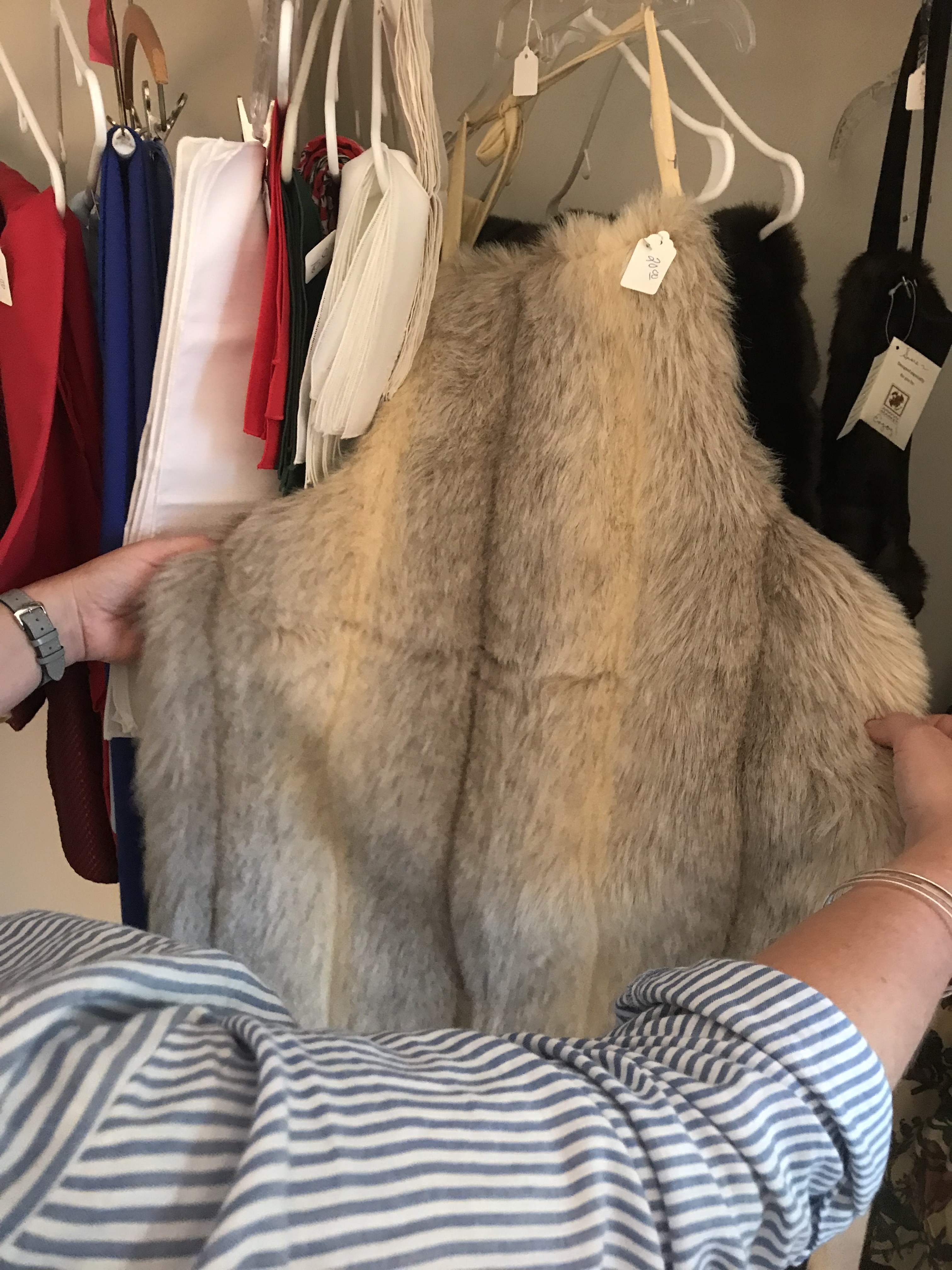 Yesterday morning at an estate sale I discovered that money might not buy happiness, but it can buy…fur aprons.