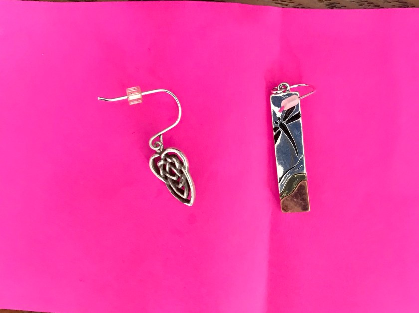 I didn’t realize I’d worn two completely different earrings to the grocery store and to brunch until I took them off when I returned home to Doright Manor. Sheesh.