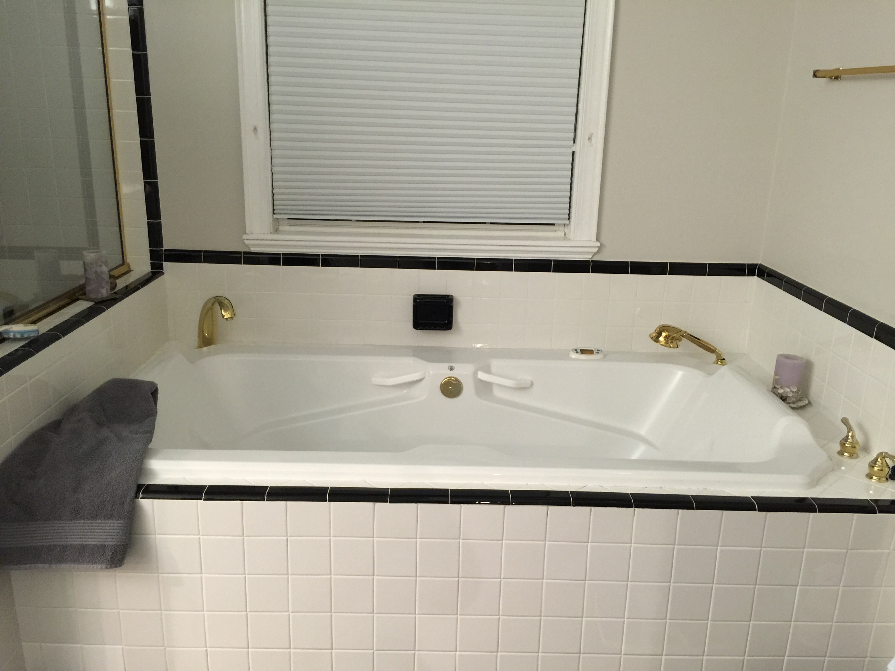Unlike what is shown in my picture above, the damned shower head wasn’t aimed so water would enter the tub. Oh no. It was aimed directly at the back edge of the tub surround, and the water pressure sent water spraying in all directions. Of course I instinctively, and irrationally, ducked, losing my footing in the process and sitting down hard. I yelled at Adele to shut the hell up. She ignored me.