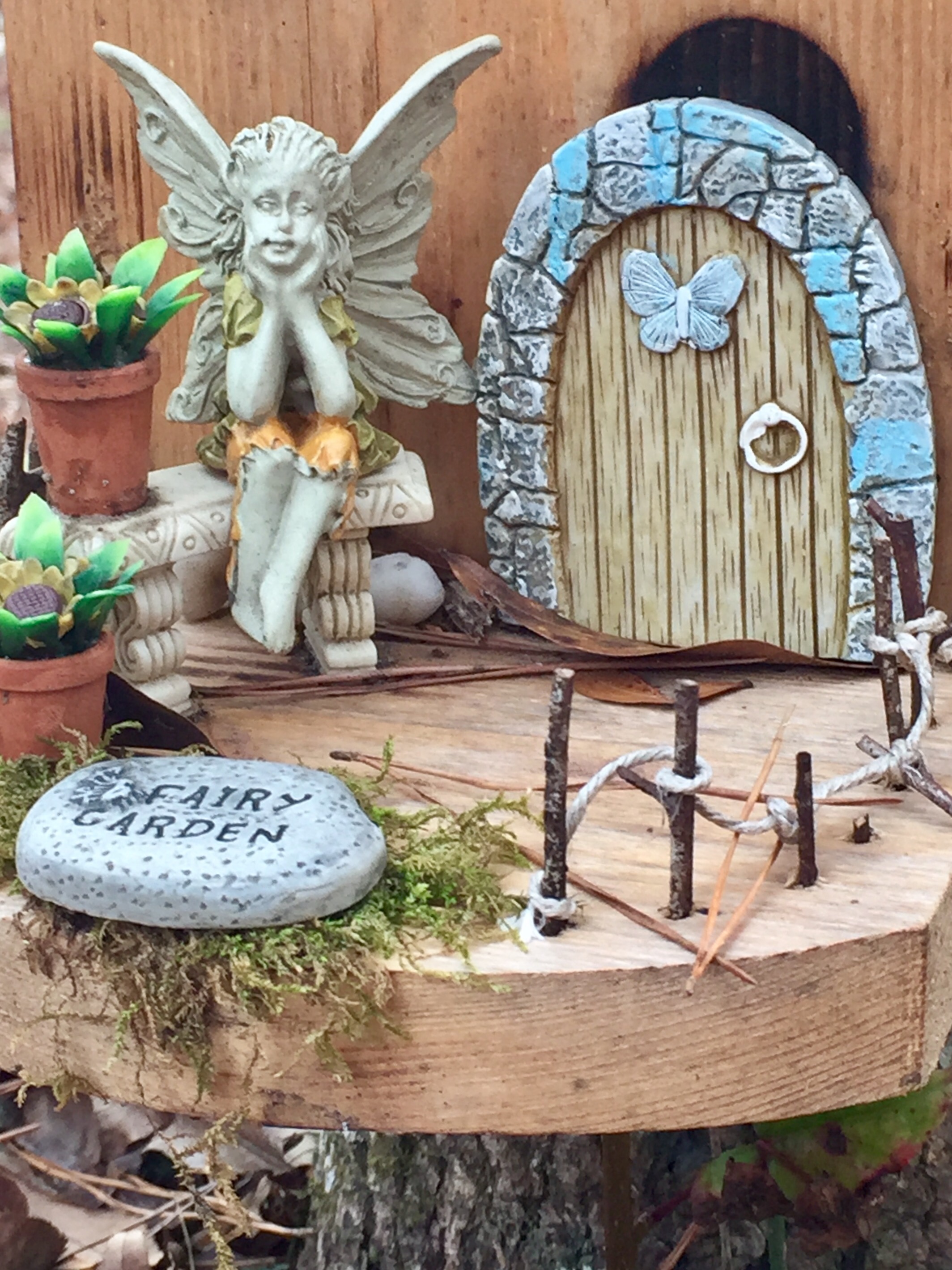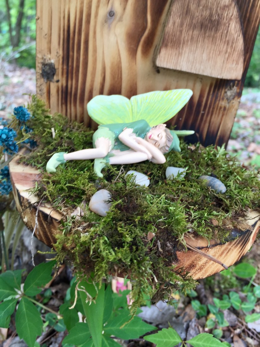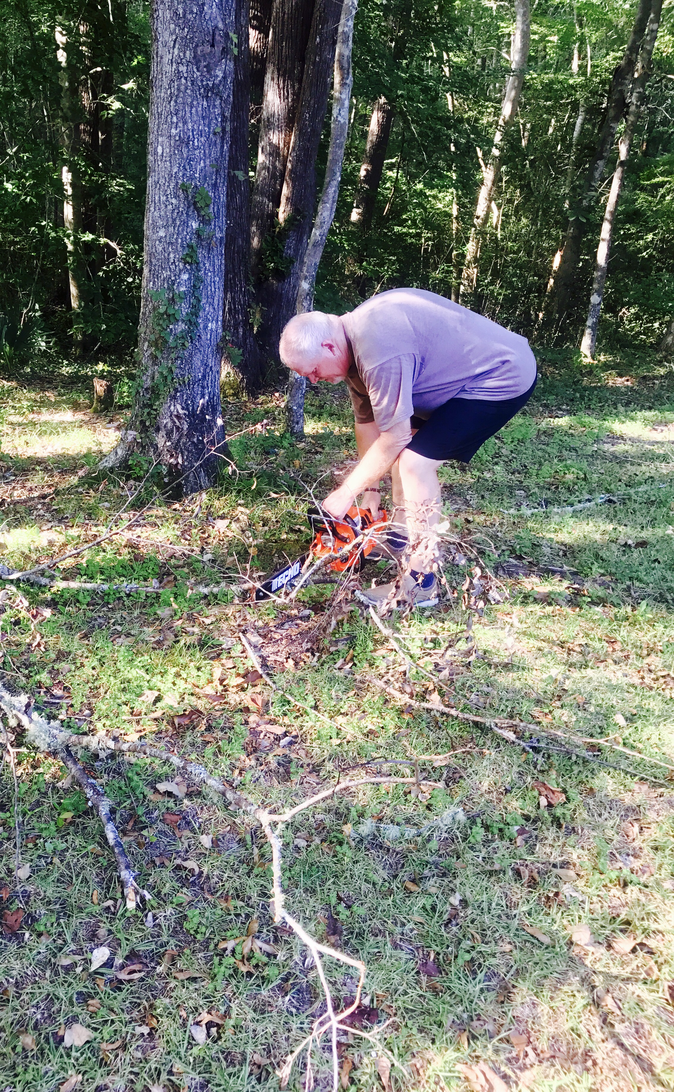Garrett chopped down a tree so that we could relocate the fairy house displaced by Hurricane Michael.
