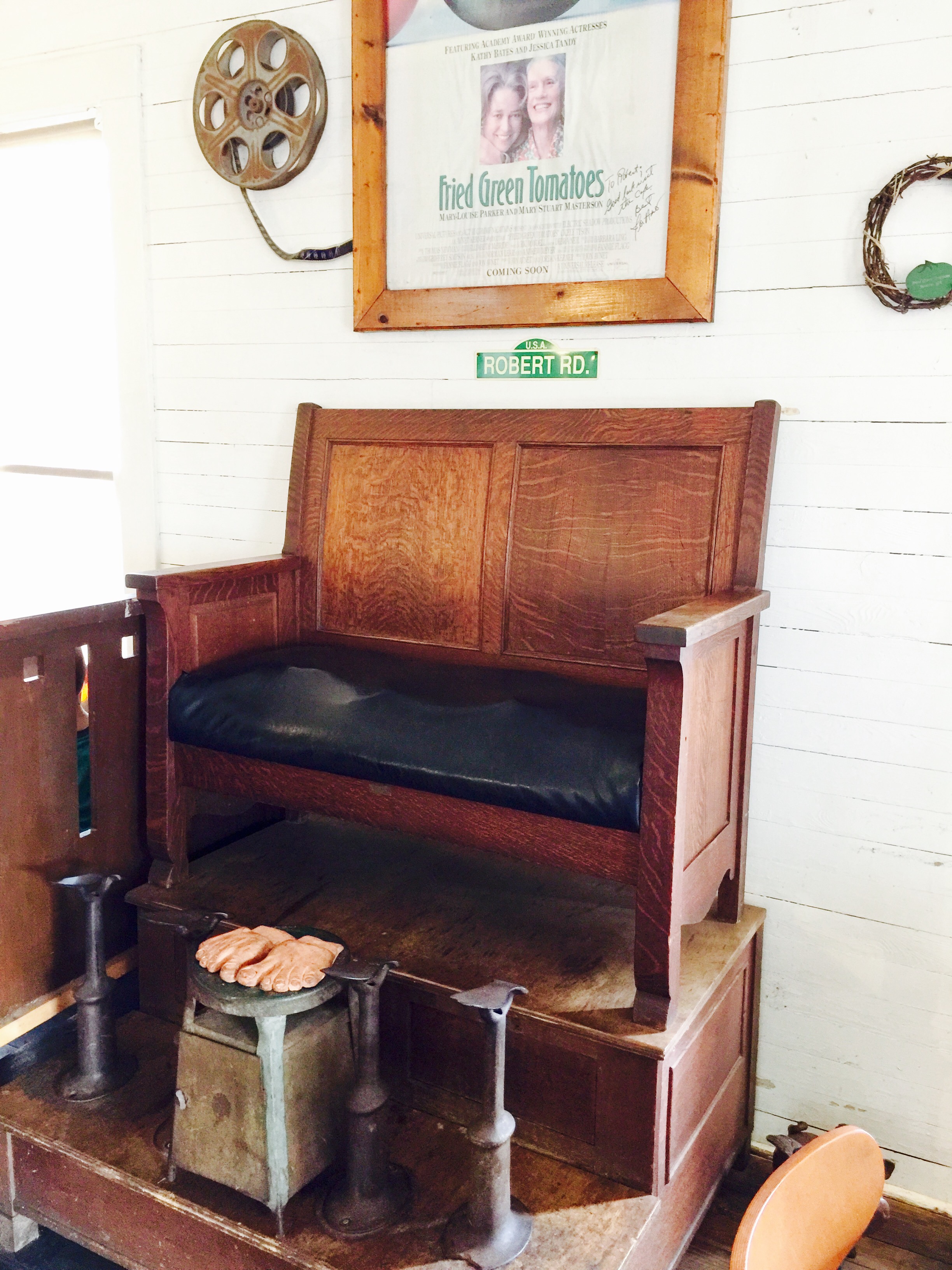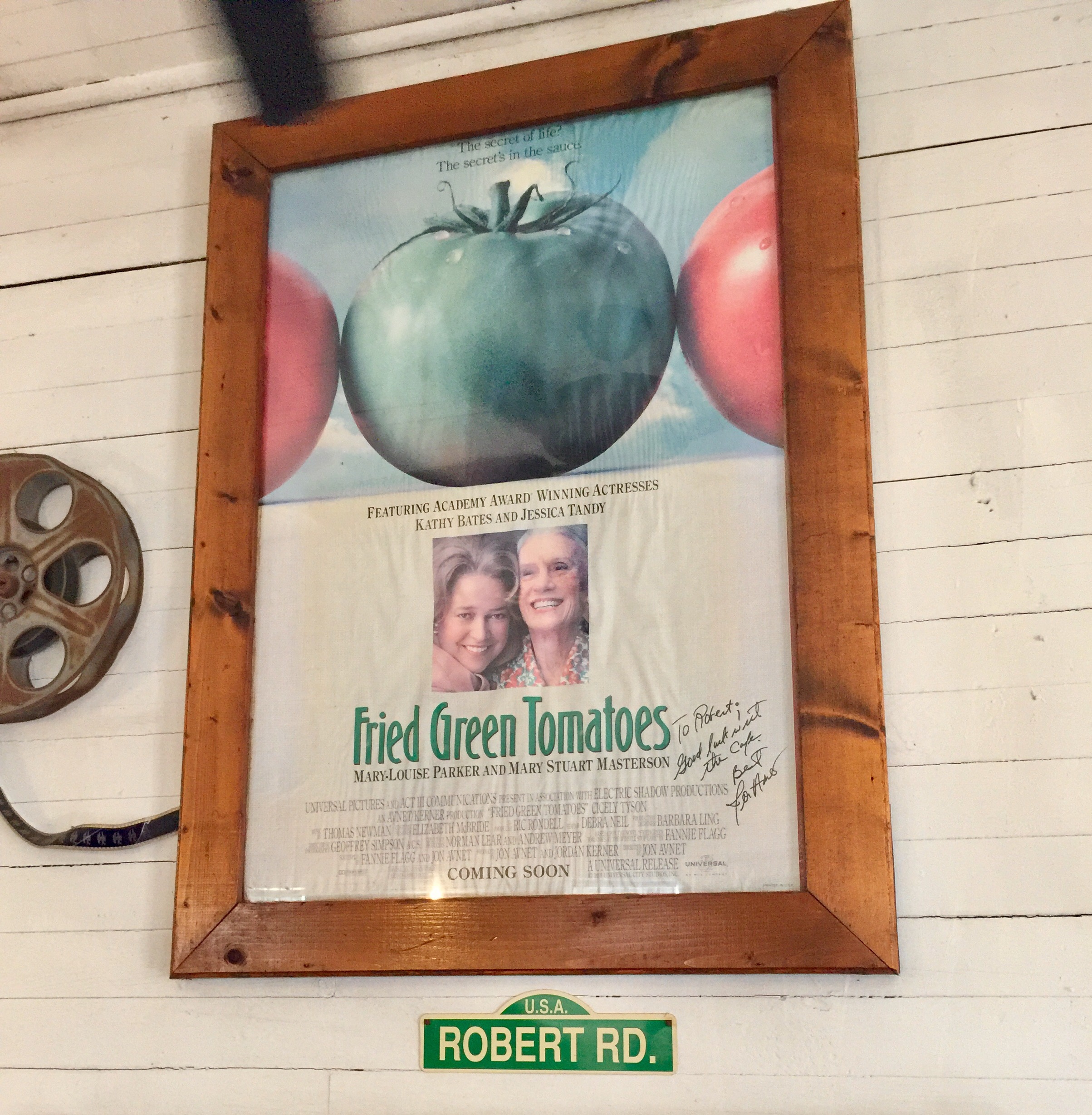 Studly Doright bought a new old motorcycle as a gift to himself for his upcoming birthday necessitating a quick trip to Atlanta, Georgia, on Friday evening. About 50 miles outside of Atlanta I saw a billboard for the Whistle Stop Cafe, made famous in Fannie Flagg’s novel, Fried Green Tomatoes at the Whistle Stop Cafe and the film, Fried Green Tomatoes.