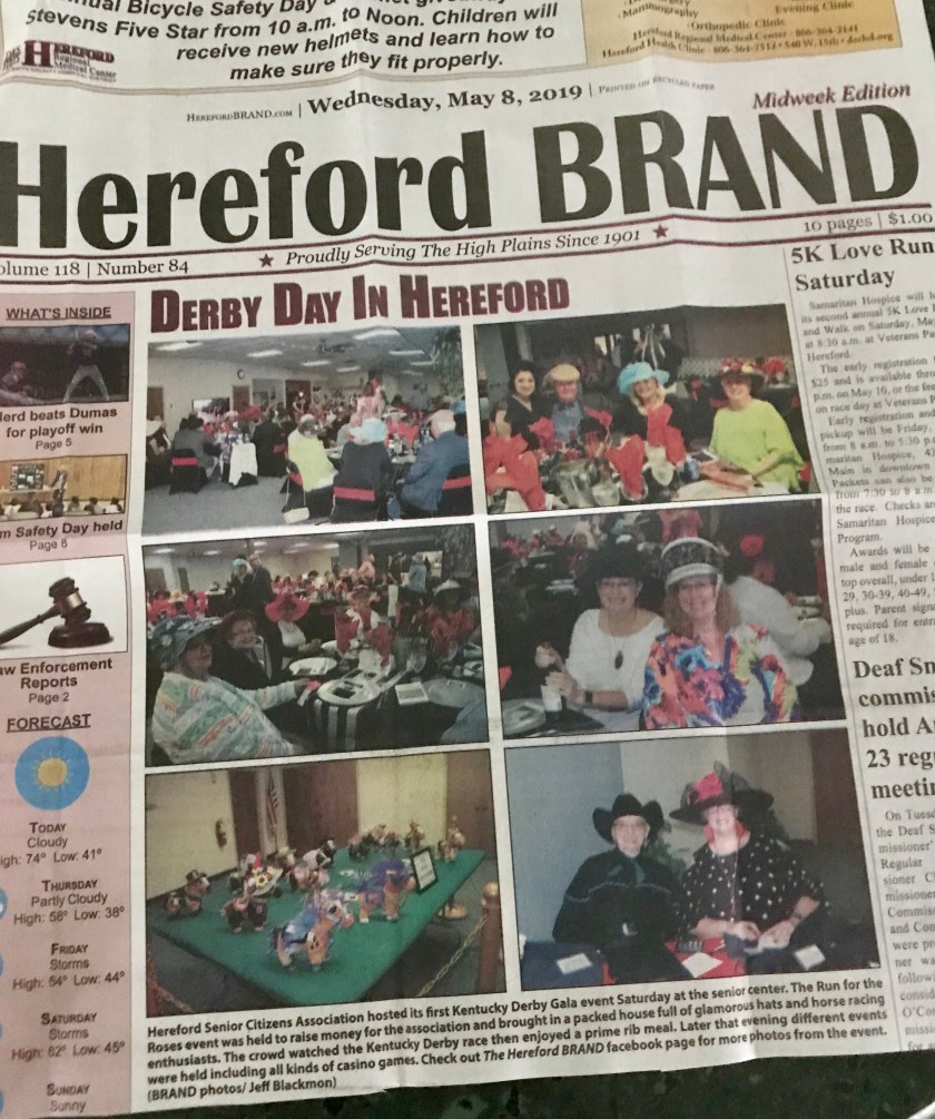 This year, I’m going to a derby! Not the derby, mind you, but my eldest sister-in-law is the director of the Senior Citizens Center in Hereford, Texas, and this year she and her staff are putting on a Kentucky Derby Gala to raise funds for the center. It’s such a big deal that I flew in for the event.
