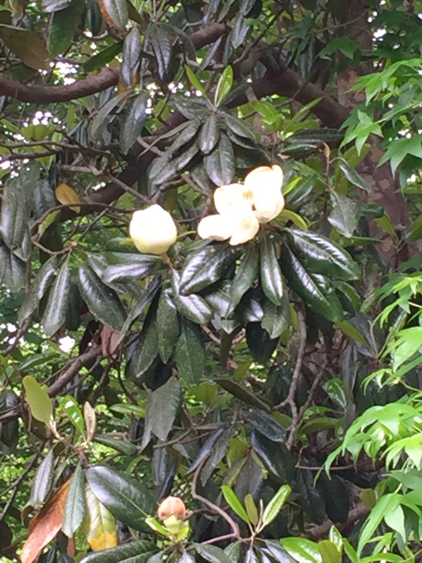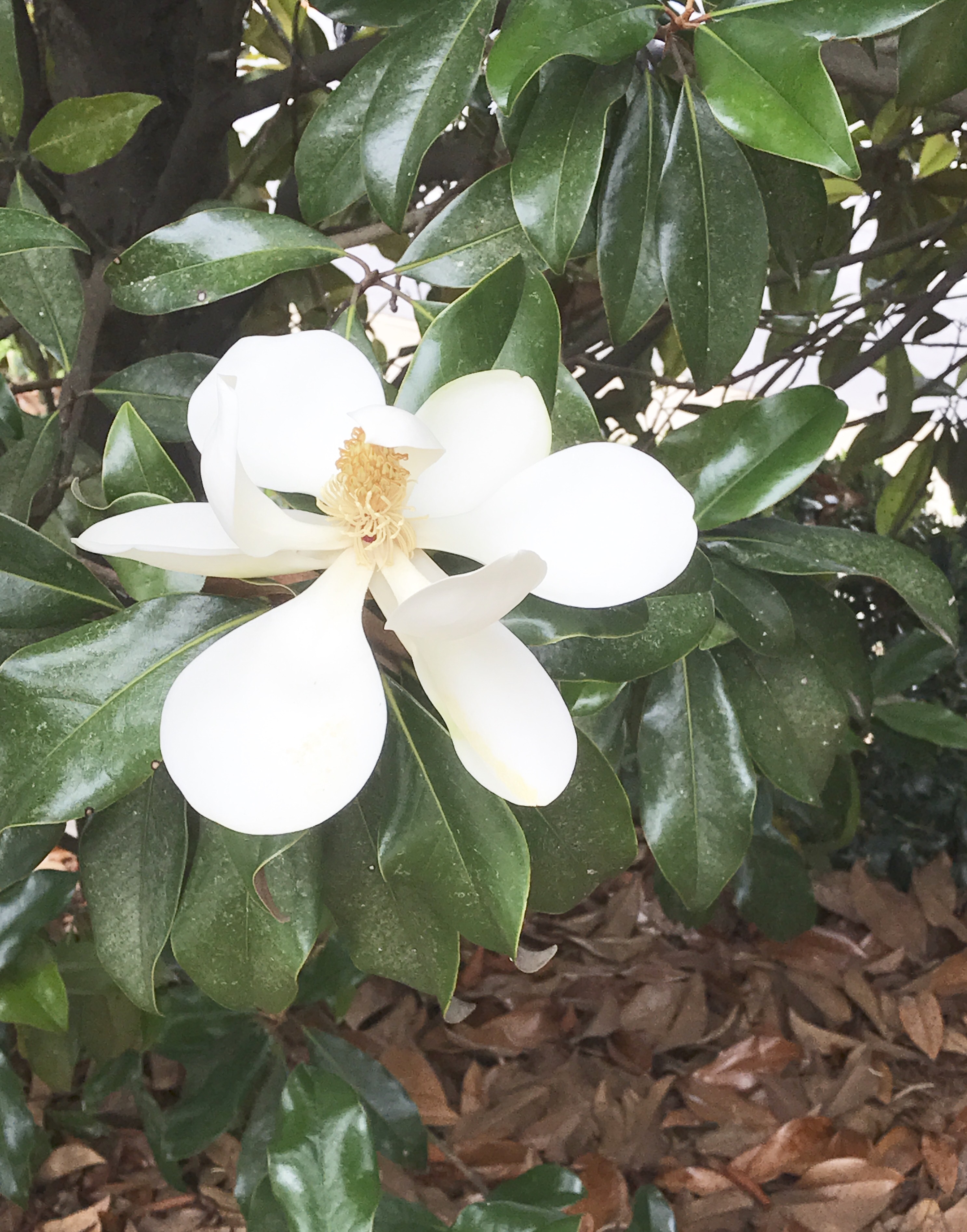 I took this photo in front of a Walgreens or CVS–one of our many drugstores in Tallahassee. I call it, “Holy Magnolia!”